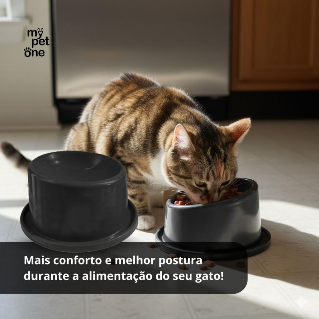 Comedouro Ergonômico Adulto 150mL Mypetone – Preto O Comedouro Ergonômico Adulto 150mL Mypetone foi desenvolvido especialmente para gatos adultos, proporcionando mais conforto e melhor postura durante a alimentação. Seu formato ergonômico facilita o acesso à ração ou água, ajudando a reduzir o esforço do pescoço e tornando o momento da refeição mais tranquilo e natural. Com capacidade de 150mL, é ideal para porções controladas, contribuindo para uma rotina alimentar mais equilibrada e organizada. Produzido em material resistente e de fácil higienização, oferece praticidade no dia a dia e design moderno na cor preta. Benefícios: Design ergonômico que favorece postura mais confortável ao se alimentar Altura e inclinação que facilitam o acesso ao alimento Capacidade ideal para porções individuais, evitando desperdícios Base estável que reduz movimentação durante o uso Superfície lisa que facilita a limpeza diária Visual moderno e discreto na cor preta Especificações: Marca: Mypetone Produto: Comedouro Ergonômico Adulto Categoria: Alimentação Indicação: Gatos adultos Porte recomendado: Pequeno a médio porte Material: Plástico resistente Capacidade: 150mL Cor: Preto Apresentação: 1 unidade Formato de venda: Unitário Observações Importantes: Higienizar regularmente com água e sabão neutro Utilizar em superfície plana para melhor estabilidade Não expor a calor excessivo Supervisão recomendada caso o gato costume morder recipientes Mypetone: conforto e cuidado na alimentação, porque seu gato está sempre em primeiro lugar.