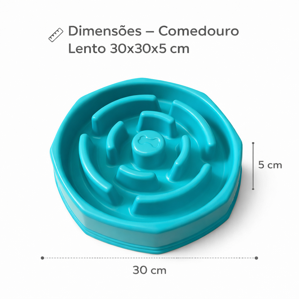 PERGUNTAS FREQUENTES PARA QUAIS CÃES O COMEDOURO LENTO EDUCADOR É INDICADO? O comedouro lento funcional é indicado para todos os cães que costumam comer muito rápido suas refeições. O comedouro visa desacelerar o processo de alimentação, de modo a evitar que o cão engula rações inteiras. Deste modo, o comedouro lento funcional visa uma melhor mastigação do seu cãopanheiro! HÁ DIFERENTES TAMANHOS DO COMEDOURO LENTO EDUCADOR? Não! Ele é tamanho único, variando apenas a cor. O COMEDOURO LENTO EDUCADOR TAMBÉM SERVE COMO BEBEDOURO? Não! Apesar de muitos comedouros serem utilizados também como bebedouros, neste caso, para maior eficiência, o comedouro é apenas para ração. ESTE COMEDOURO LENTO EDUCADOR PODE SER UTILIZADO POR GATOS? Não! Há uma linha específica e apropriada para gatos. O seu cachorro(a) costuma comer tão rápido a ração de modo que não mastiga direito? Independente da raça e do porte, a hora de se alimentar é a favorita para todos os cães! Muitas vezes eles são tão enérgicos e alegres que acabam comendo tão rápido que não mastigam direito e engolem a ração inteira junto com ar! Você coloca a ração e logo depois, quando olha, o comedouro está vazio... Você sabia que comer muito rápido a ração aumenta a chance do seu cãopanheiro(a) engasgar, vomitar, se asfixiar ou até mesmo ter torção gástrica? O Comedouro Lento Educador é a solução mais indicada por Médicos Veterinários aos donos(a) de cães para acabar com este problema! Com o design elaborado para evitar que o cão consuma o alimento depressa, seu amigo(a) estará protegido de ter eventuais problemas em virtude de consumo acelerado! Benefícios do Comedouro Lento Educador para Cães: Desacelera a alimentação. Evita o engolimento de ração inteira. Evita a entrada de ar durante a alimentação do cachorro(a). Evita engasgos e asfixia. Evita arrotos e flatos (pum). Contribui para uma melhor alimentação e absorção geral para o seu cão.