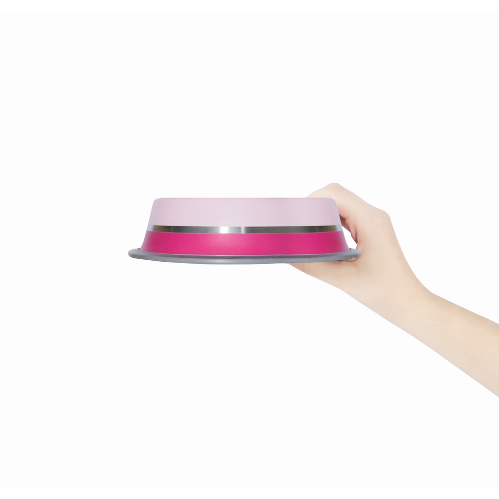Este comedouro é feito em aço inoxidável, o que faz dele muito mais sólido e resistente do que os de alumínio. Ele tem uma base larga, com anel de silicone, que previne tombamento e derrapagens. O material é a prova de ferrugem, bactérias, manchas e impactos. Com base de silicone, dura muito mais que a borracha. Sua liga especial de cromo e níquel proporciona máxima durabilidade, força e brilho, além de altíssima resistência contra impactos e riscos. Este comedouro canino é seguro, pois é colorido utilizando-se somente materiais aprovados para a alimentação humana. Pode ir à máquina de lavar louças, interior fácil de limpar, não absorve odores. Você encontra comedouros disponíveis nos tamanhos P, M e G, para gatos e cachorros.