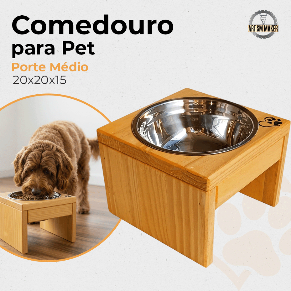 Comedouro Único Médio Alimentador Ergonômico Elevado ✅Sobre o produto: ✔ Madeira pinus envernizado (atóxico) ✔ Tinta PVA é a base de água ✅Diferencial do nosso produto: ✔ Ótima qualidade ✔ Alta durabilidade ✔ Envio super rápido ✔ Comedouro entalhado na madeira, com ótimo acabamento e qualidade ✔ Produzido com madeira maciça de reflorestamento ele tem acabamento em verniz base água, o que além de mais sustentável ele não deixa aquele cheiro forte ✅Benefícios: ✔ Melhora na digestão ✔ Cria uma postura mais saudável para seu pet ✔ Tem mais estabilidade na hora de se alimentar ✔ Higiene, o pet não fica derrubando água ou alimentos fora dos potes ✔ Pets com artrite comem com muitos mais conforto e menos dores ✔ Preserva articulações dos pets evitando esforço sobre elas ✔ Melhor absorção de oxigênio ✔ Acompanha vasilha de inox ✅Tabela de medidas: ✔ Altura: 15cm ✔ Largura: 20cm ✔ Comprimento: 20cm ✔ 01 Vasilhas de Inox: 800 ml cada ✔ Diâmetro das vasilhas: 18cm 🚚 Envio Super Rápido 🥰 Para dúvidas, estamos à disposição no chat