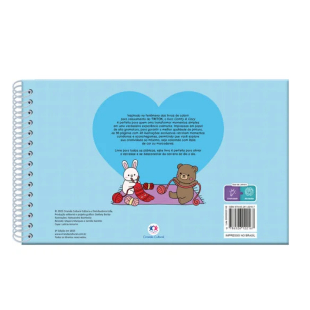 O livro COMFY & COZY é uma excelente escolha para quem busca transformar pequenos momentos em experiências de relaxamento e conforto. Inspirado no sucesso dos livros de colorir no TikTok, ele combina criatividade com bem-estar. Com 96 páginas, 48 desenhos exclusivos para colorir e impressos em papel de alta gramatura, o livro oferece uma experiência de pintura de alta qualidade, ideal tanto para lápis de cor quanto para marcadores. Suas ilustrações capturam a essência do cotidianos e momentos aconchegantes, incentivando a exploração artística de forma descomplicada. Livre para todas as idades, COMFY & COZY é mais que um livro de colorir: é uma ferramenta perfeita para aliviar o estresse, desacelerar e se desconectar da rotina atribulada. Uma verdadeira pausa criativa para o corpo e a mente! 16x21cm 96 Páginas