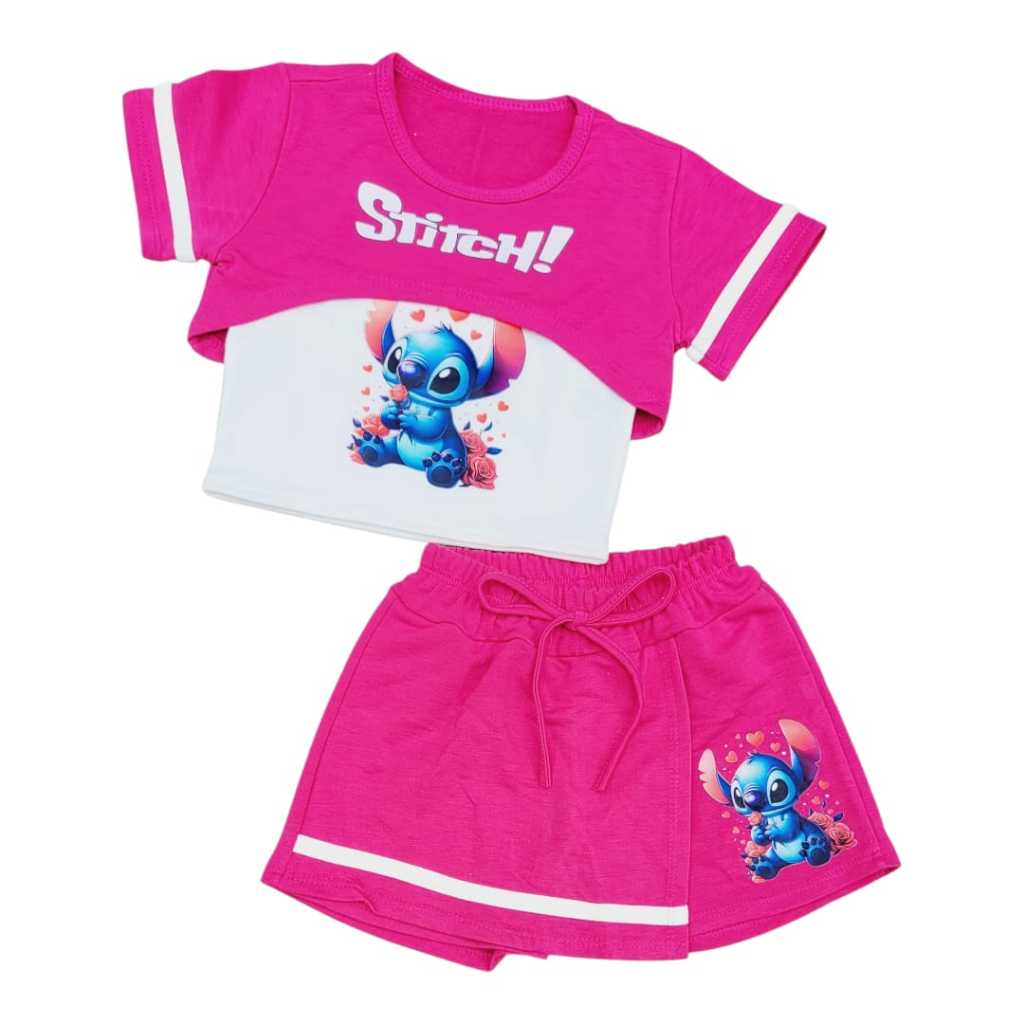 Encante-se com este lindo conjunto infantil inspirado no Stitch, perfeito para deixar o visual das pequenas ainda mais fofo e estiloso! ✨ Detalhes do Conjunto: Conjunto com 3 peças: Cropped manga curta com estampa fofa do Stitch Saia com short interno (modelo saia-shorts), garantindo conforto e segurança regata croppet com estampa Estampa colorida e divertida, com excelente acabamento Cintura com elástico e amarração decorativa, proporcionando melhor ajuste Tecido leve, macio e confortável, ideal para o dia a dia 👧 Indicação de uso: Perfeito para passeios, festas, escola ou momentos de lazer. 📏 Tamanhos disponíveis: 4 6 8 10 12 Entrega no Mesmo dia !!!