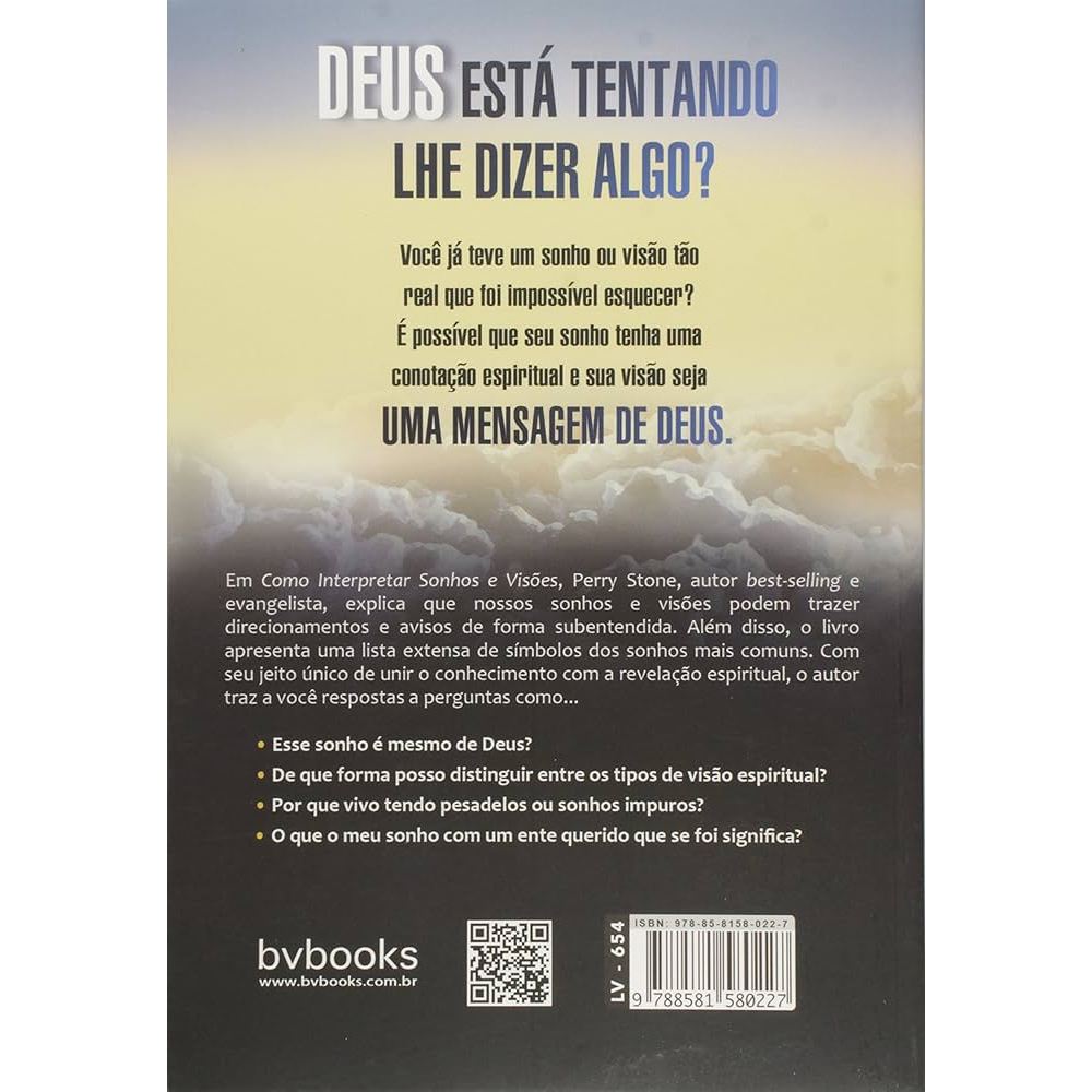 Como Interpretar Sonhos e Visões de Perry Stone é um guia completo que auxilia o leitor a compreender as mensagens recebidas através dos sonhos e visões, segundo a perspectiva bíblica. A obra explica símbolos, significados e formas de discernir revelações divinas, oferecendo ferramentas práticas para o crescimento espiritual e o fortalecimento da fé. Ideal para estudiosos da Bíblia, líderes religiosos e fiéis que buscam aprofundar seu entendimento sobre comunicação espiritual, este livro promove uma leitura acessível e transformadora para quem deseja interpretar sonhos com segurança e sabedoria. FICHA TECNICA Título: Como Interpretar Sonhos e Visões Autor: Perry Stone Editora: BV Books Formato: Brochura Páginas: 192 Peso: 250 g (aproximado) ISBN: (informar) PALAVRAS-CHAVE como interpretar sonhos, interpretação de visões, perry stone, revelações espirituais, significado bíblico dos sonhos, guia espiritual, fé cristã, crescimento espiritual, ensinamentos bíblicos, comunicação divina.