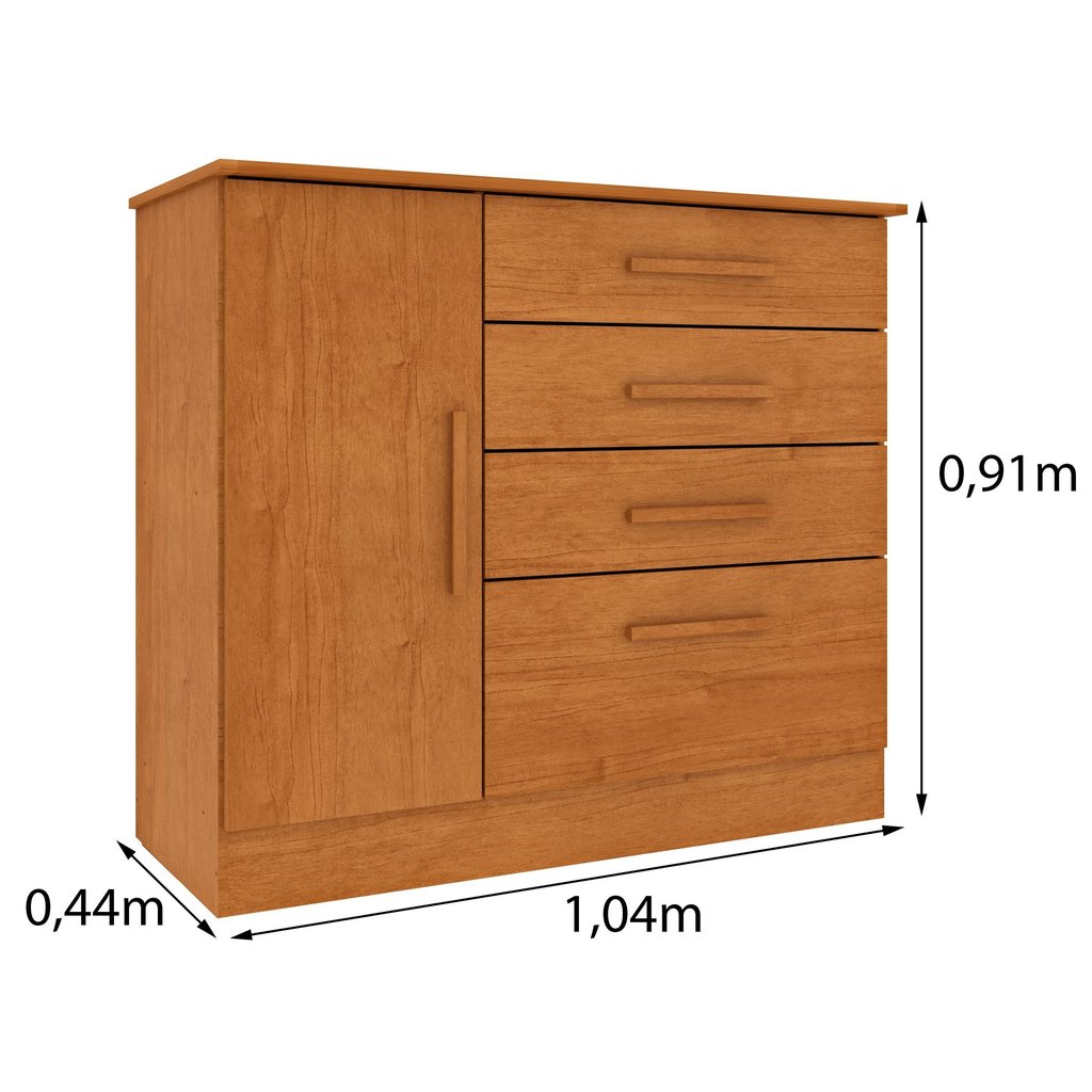 Cômoda 1 Porta 4 Gavetas 104cm Chicago Cinamomo