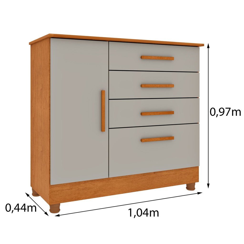 Cômoda 1 Porta 4 Gavetas com pés 104cm Chicago Cinamomo/Off White