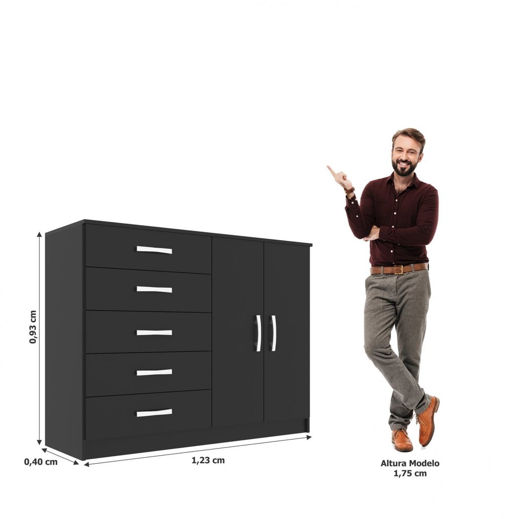 Cômoda 2 Portas 5 Gavetas Black Preto