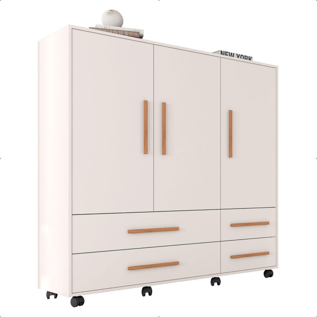 A Cômoda Seth da Caemmun é a escolha perfeita para quem busca um móvel resistente e elegante. Possui um amplo espaço interno, enquanto o design moderno e as suas portas de bater criam um visual clean e sofisticado. As gavetas espaçosas permitem organizar suas roupas e pertences de forma prática e eficiente. Dimensões do Produto: - Peso: 62,3 kg; - Altura: 143 cm; - Largura: 136 cm; - Profundidade: 45 cm. Características Técnicas: - Possui 3 Portas; - Possui 4 Nichos; - Possui 4 Gavetas; - Possui 2 Prateleiras; - Possui 1 Cabideiro em Alumínio; - Tonalidade do Produto: Branco; - Estrutura em MDP de 12mm ,15mm de espessura. HDF de 2,5mm de espessura. Peso Suportado: - Gavetas: 3 kg cada; - Prateleiras: 4-3 kg cada; - Repartições superior: 3 kg; - Repartições inferior: 5-4 kg. - Acompanha manual de montagem; - Garantia de 90 dias contra defeito de fabricação; - Este móvel chegará em sua casa separado em 1 volume. Dimensões do Volume: - Altura: 16,5 cm; - Largura: 152,7 cm; - Comprimento: 45,7 cm. - Recomendações de limpeza: Limpar com pano macio, seco ou úmido, sem uso de produtos abrasivos, pois podem trazer danos ao produto. - Sobre a entrega: As transportadoras contratadas, não realizam entregas em apartamentos, realizando assim a entrega na portaria do prédio. *Produto segue desmontado, montagem por conta do comprador; *Imagens do produto são meramente ilustrativas.