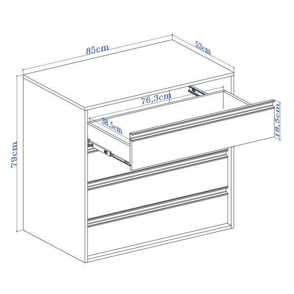 1. 100% em MDF. 2. Revestido por pintura de alto relevo com 7 camadas de tinta; conferindo beleza, durabilidade e resistência. 3. Puxador perfil em alumínio anodizado champanhe, embeleza e não enferruja, mesmo em regiões litorâneas sob o efeito da maresia; 4. Corrediças telescópicas com limitador de saída permitem abertura total da gaveta sem risco de escape oferecendo maior aproveitamento com total segurança. Estilo: Moderno Peso (kg): 32 Garantia: 03 Meses Altura (cm): 79 Acabamento: Pintura UV Largura (cm): 85 Possui Pés: Não Possui Nichos: Não Possui Portas: Não Possui Gavetas: Sim Possui Rodízio: Não Possui Espelhos: Não Possui Trocador: Não Profundidade (cm): 53 Escala de Brilho: Semi-Brilho Gaveta com Chave: Não Material da Porta: MDF Material do Fundo: MDF Ambiente Principal: Quarto Material da Gaveta: MDF Material Principal: MDF Possui Prateleiras: Não Sapatas Niveladoras: Sim Acabamento da Gaveta: Pintura Texturizada UV Material da Prateleira: MDF Peso Máximo por Gaveta: 25 Tipo de Puxador da Porta: Embutido Tipo de Puxador da Gaveta: Embutido Escala de Brilho da Gaveta: Fosco Tipo de Corrediça da Gaveta: Metálica Telescópica Material do Puxador da Gaveta: Alumínio Tipo de Dobradiça/Corrediça da Porta: Metálica Marca: Belmax Cor Interna: Branco Cor: Branco Cor do Produto: Branco Itens Inclusos: 1 Cômoda e 1 manual de montagem. Cor Predominante: Branco Quantidade de Gavetas: 04 Gavetas