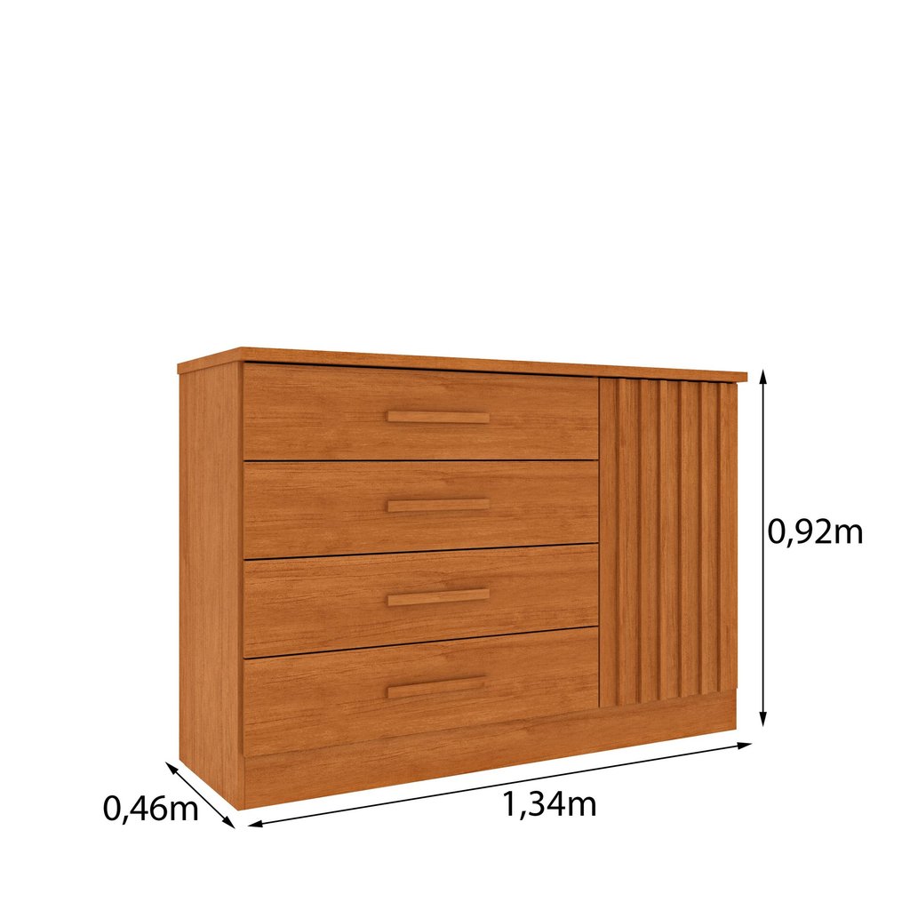 Beleza, praticidade e organização em um só móvel! A Cômoda 4 Gavetas em MDF/MDP Ripado Espresso Móveis é a escolha perfeita para quem deseja um quarto mais funcional sem abrir mão do estilo. Com um design moderno e elegante, ela combina acabamentos de alta qualidade com excelente aproveitamento de espaço. Com 134cm de largura, 92cm de altura e 46cm de profundidade, essa cômoda é ideal para compor ambientes sofisticados e bem organizados. 4 gavetas espaçosas: Equipadas com corrediças telescópicas, garantem abertura suave e durabilidade, perfeitas para guardar roupas e acessórios com praticidade. Sapateira lateral com 1 prateleira: Ideal para organizar calçados e outros objetos, com porta ripada em MDF que agrega um toque moderno e elegante. Tampo em MDF 25mm: Robusto e funcional, oferece espaço extra para apoiar itens decorativos ou de uso pessoal. Produzida em MDP e MDF, a cômoda oferece resistência e longa vida útil, sendo uma peça versátil que combina facilmente com diferentes estilos de decoração. A Cômoda 4 Gavetas em MDF/MDP Ripado Espresso Móveis é mais do que um móvel – é uma solução completa para o seu quarto, unindo estética, qualidade e praticidade. Estilo: Moderno Peso (kg): 52.2 Garantia: 03 Meses Altura (cm): 92 Acabamento: Pintura UV Largura (cm): 134 Possui Pés: Rodapé Possui Nichos: Não Possui Portas: Sim Tipo de Porta: Bater Porta Janelada: Não Possui Gavetas: Sim Suporta Até (kg): 20 Tipo de Cômoda: Adulto Profundidade (cm): 46 Escala de Brilho: Fosco Material dos Pés: MDP Material da Porta: MDP Material do Fundo: MDF Origem do Produto: Nacional Ambiente Principal: Quarto Material da Gaveta: MDP Material Principal: MDF/MDP Possui Prateleiras: Sim Acabamento da Porta: Pintura UV Acabamento da Gaveta: Pintura UV Material da Prateleira: MDP Peso Máximo por Gaveta: 5 Acabamento da Prateleira: Pintura UV Tipo de Puxador da Porta: Externo Escala de Brilho da Porta: Fosco Tipo de Puxador da Gaveta: Externo Escala de Brilho da Gaveta: Fosco Peso Máximo por Prateleira: 5 Tipo de Corrediça da Gaveta: Metálica Telescópica Material do Puxador da Porta: MDF Material do Puxador da Gaveta: MDF Escala de Brilho da Prateleira: Fosco Informações Complementares (Novo): Ripas na porta lateral em mdf e tampo em mdf 25mm Tipo de Dobradiça/Corrediça da Porta: Metálica Marca: Espresso Móveis Cor: Cinamomo Cor do Produto: Cinamomo Itens Inclusos: 1 cômoda + kit ferragens + manual de montagem Cor Predominante: Bege Linha ou Coleção: Ripado Cor do Puxador: Branco Quantidade de Prateleiras: 01 Prateleira Quantidade de Gavetas: 04 Gavetas