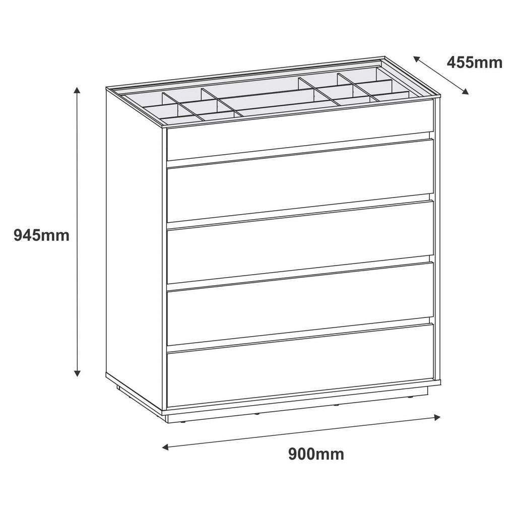 Cômoda 5 Gavetas com Organizador Tampo Vidro Belize Branco
