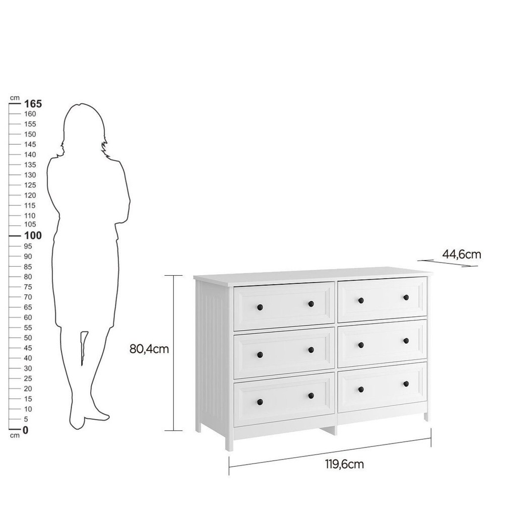 Seu dormitório ficará muito mais bonito e organizado com a Cômoda 6 Gavetas Ditália. As gavetas do móvel são simplesmente perfeitas para acomodar pequenos e médios objetos. O tampo do móvel suporta até 30 kg e as gavetas suportam até 10 kg cada. O móvel possui design exclusivo inspirado no estilo Clássico Americano. Estilo: Clássico Peso (kg): 48 Garantia: 03 Meses Altura (cm): 80.4 Acabamento: Pintura UV Largura (cm): 119.6 Possui Pés: Sim Possui Nichos: Não Possui Portas: Não Altura dos Pés: 5 Pés Reguláveis: Não Possui Gavetas: Sim Possui Rodízio: Não Suporta Até (kg): 90 Possui Espelhos: Não Profundidade (cm): 44.6 Escala de Brilho: Fosco Gaveta com Chave: Não Material dos Pés: MDF Material do Fundo: MDF Origem do Produto: Nacional Acabamento dos Pés: Pintura Ambiente Principal: Quarto Material da Gaveta: MDF Material Principal: MDF/MDP Possui Prateleiras: Não Sapatas Niveladoras: Sim Acabamento da Gaveta: Pintura UV Peso Máximo por Gaveta: 10 Tipo de Puxador da Gaveta: Externo Escala de Brilho da Gaveta: Fosco Tipo de Corrediça da Gaveta: Metálica Simples Material do Puxador da Gaveta: Metal Marca: Ditália Móveis Cor Interna: Branco Cor do Produto: Branco Itens Inclusos: 1 Cômoda, Kit Ferragens e Manual de Montagem Cor Predominante: Branco Quantidade de Gavetas: 06 Gavetas
