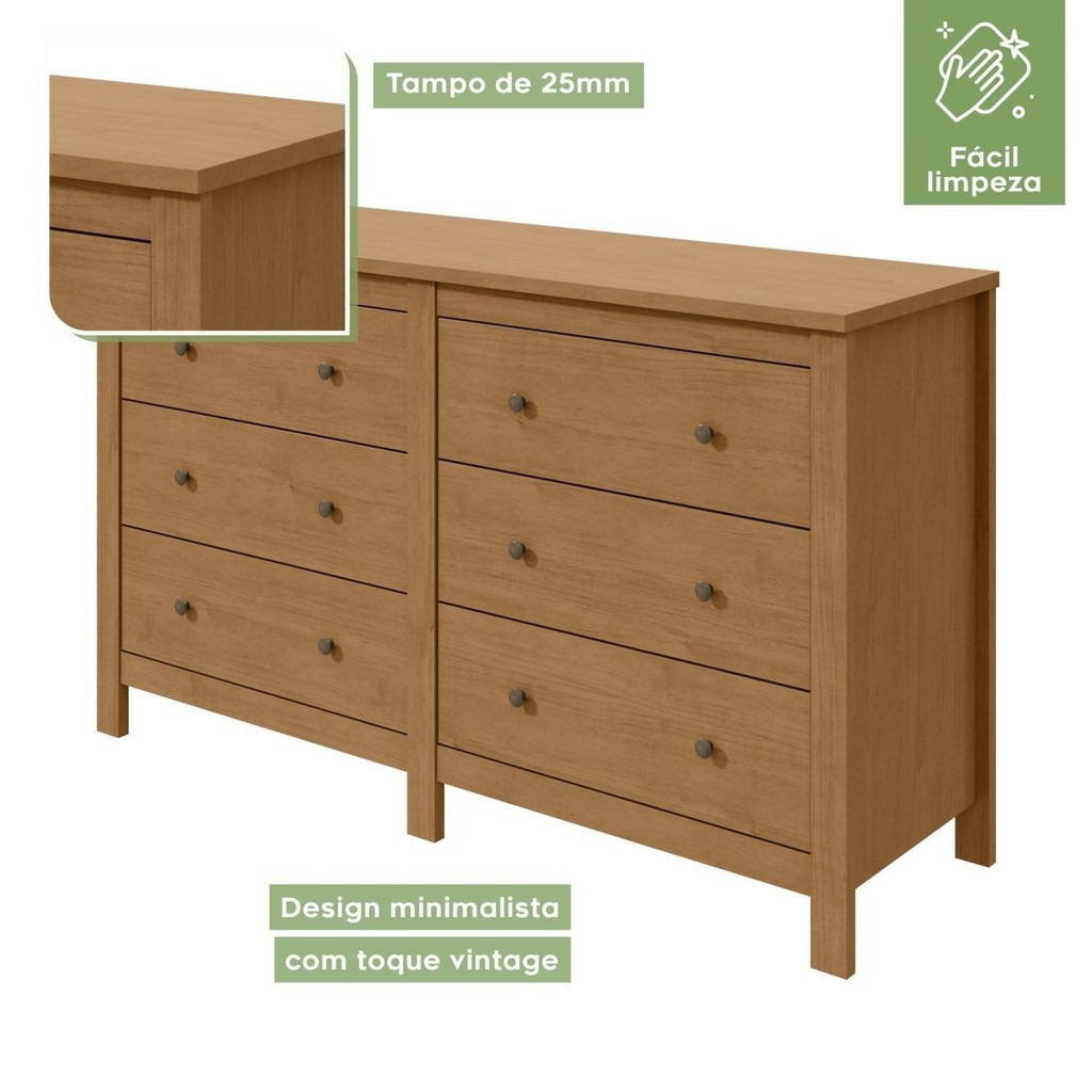 Cômoda 6 Gavetas Maggiore New Amêndoa Clean