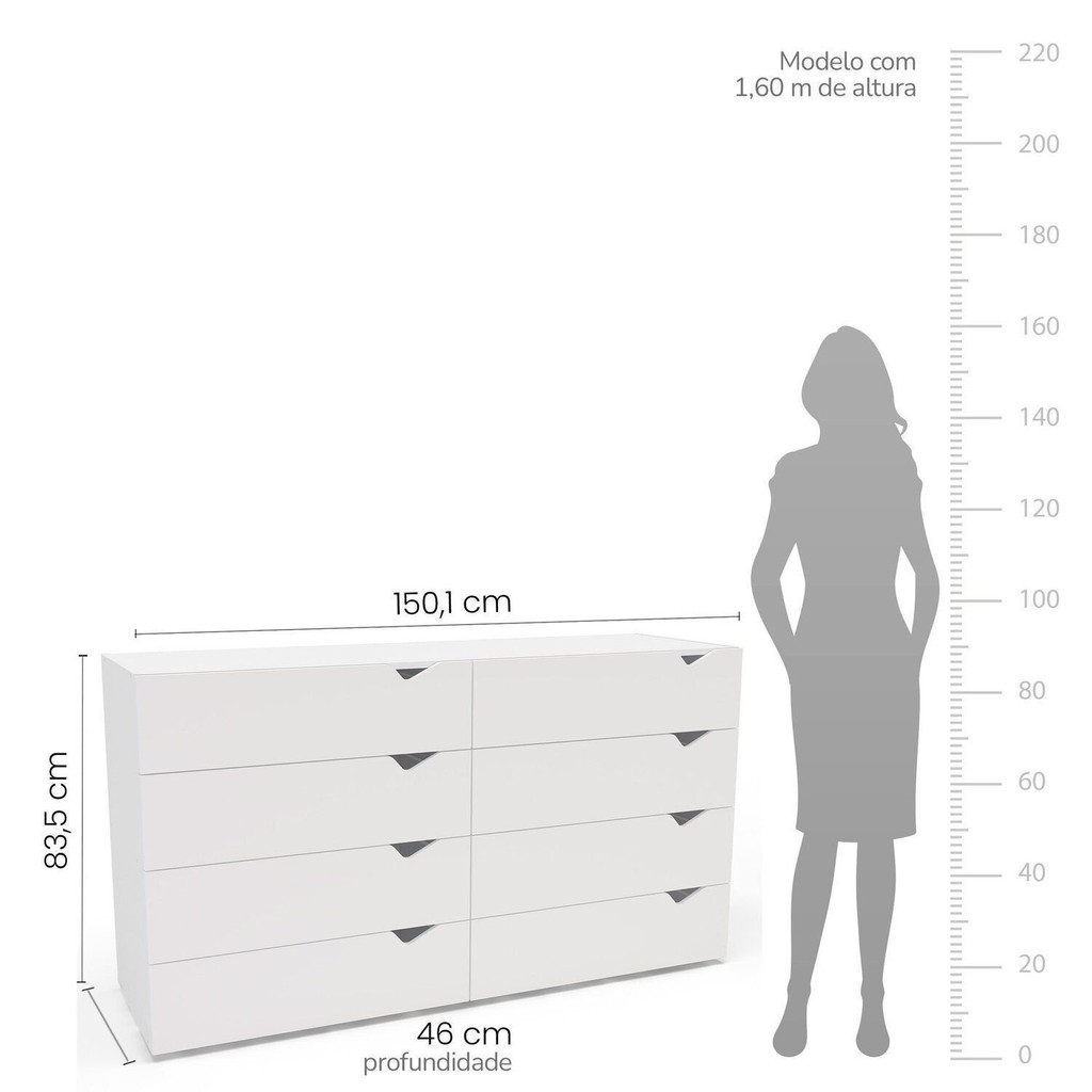 Cômoda 8 Gavetas 83,5cm X 150cm Porto Branco