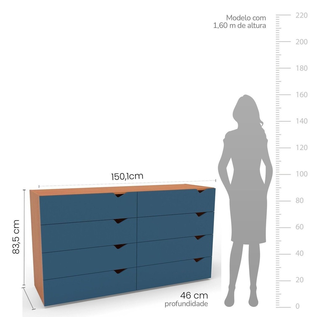 Cômoda 8 Gavetas 83,5x150,1x46 Cm Porto Freijó/Azul