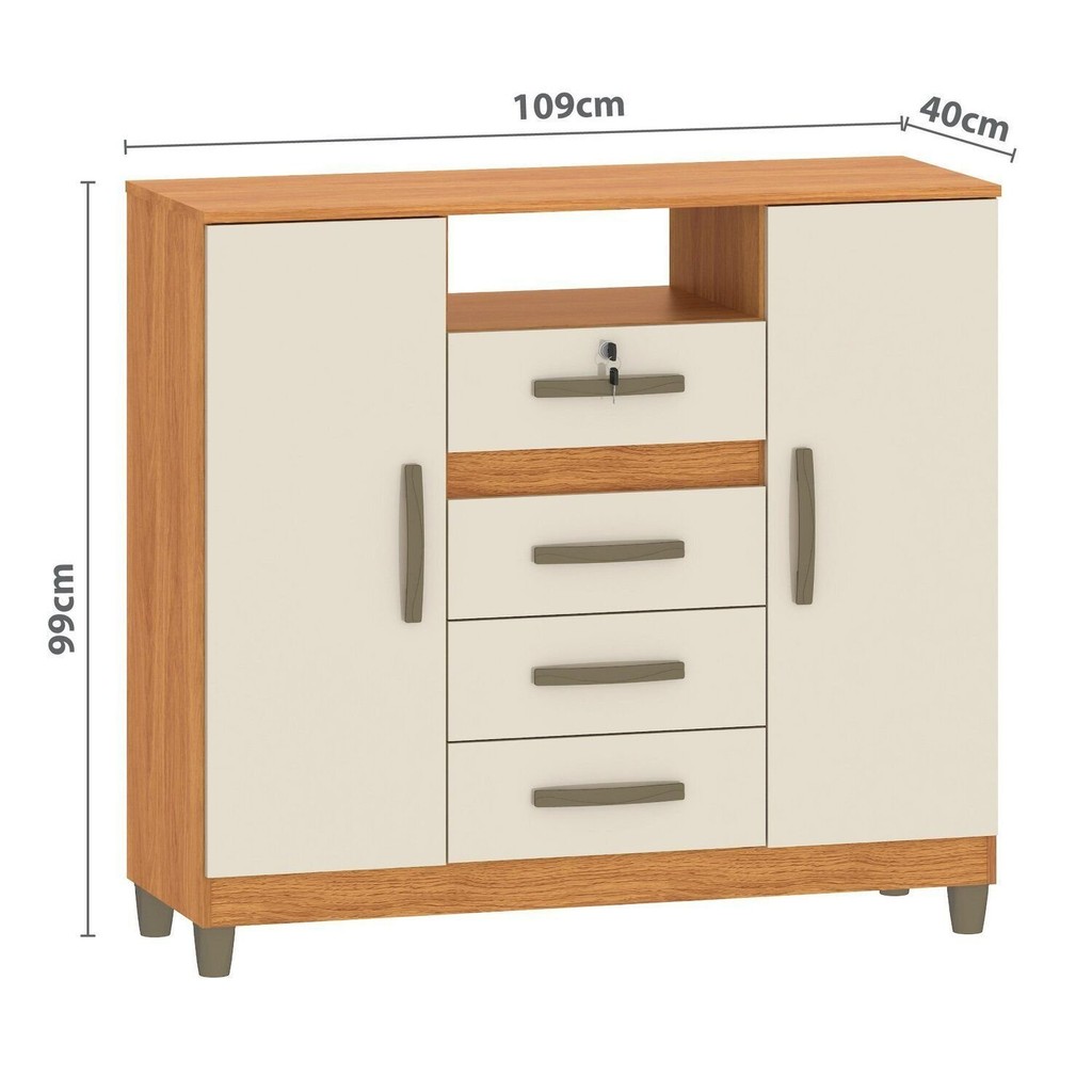 Cômoda Angra 2 Portas 4 Gavetas 99x109x40 Cm Cinamomo/Off White