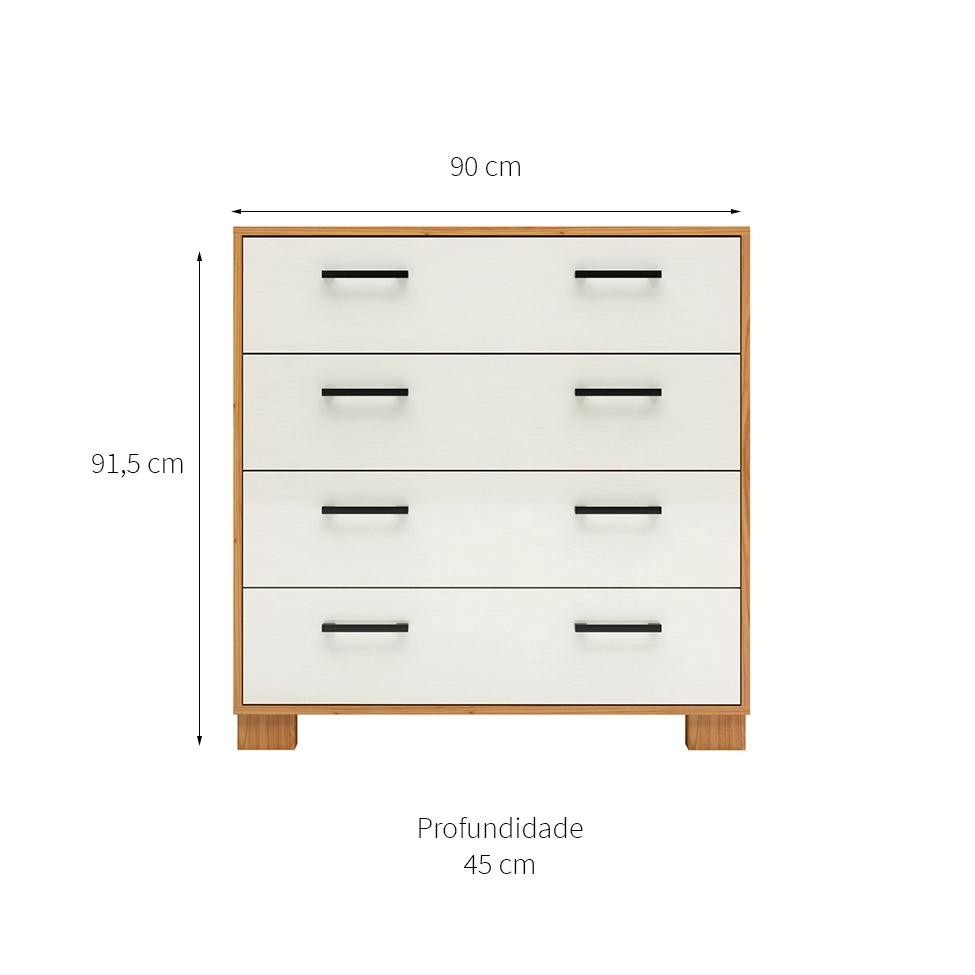 Que tal a Cômoda Annecy?Seja para complementar a utilidade do guarda-roupa ou ser um dos destaques do quarto, a Cômoda Annecy é o elemento certo para a sua organização! São 4 gavetas que cedem espaço para as peças de vestuário, roupa íntima e outras que não precisam ficar penduradas, enquanto o tampo serve de apoio para os demais objetos de uso pessoal ou até decorativos. Visualmente, o móvel ainda conta com caixaria discreta nas cores freijó e off white. Compacta e fácil de inserir no dormitório, ela está entre os itens indispensáveis para uma rotina mais prática. Cor: OFF WHITE Garantia em Meses: 3 Cores do Produto: Off White Instruções/Cuidados: Utilizar pano macio e levemente umedecido. Nunca use solventes ou abrasivos. Peso suportado máximo: 40 kg no tampo e 5 kg em cada gaveta. Conteúdo da Embalagem: 1 Cômoda - Entregue em: 1 Volume Modelo: Annecy Número de Volumes: 1 Material: A cômoda Annecy tem sua estrutura em MDF, sendo composta por 1 gaveta e acabamento fosco e brilho. Material para Filtro: MDF Descrição do Tamanho: Altura: 91,5 cm Largura: 90 cm Profundidade: 45 cm Altura do Produto (cm): 92 Largura do Produto (cm): 90 Comprimento do Produto (cm): 45 Peso do Produto (Kg): 43 Produto precisa de Montagem?: Sim, sugerimos a contratação do nosso serviço de montagem (para os CEPs em que o serviço está disponível) ou de algum profissional experiente de sua preferência Divisória de Espaço: 0 Gaveta com Divisórias: 0 Gaveta com trava: 0 Sapatas: 0 Cabideiro: 0 Número de portas: Sem portas Número de gavetas: 4 Tipo de pé: Fixo Número de Prateleiras: Sem Prateleiras Material da estrutura: MDF Material do puxador: Plástico Necessita fixação na parede: Sim Possui chaves: Não Possui espelho/vidro: Não Tipo da Corrediça da gaveta: Telescópica Material do Tampo: MDF Material dos pés: MDF PROFUNDIDADE x LARGURA x ALTURA: 45 x 90 x 92 Fornecedor: Móveis Dalla Costa Ltda Baterias são necessárias?: Não Certificação de teste externa: Não Is Fragile: Não Componentes incluídos: Não Número da peça: Não Produto: Cômoda Cômodo Indicado: Quarto Inclui manual de montagem: Sim