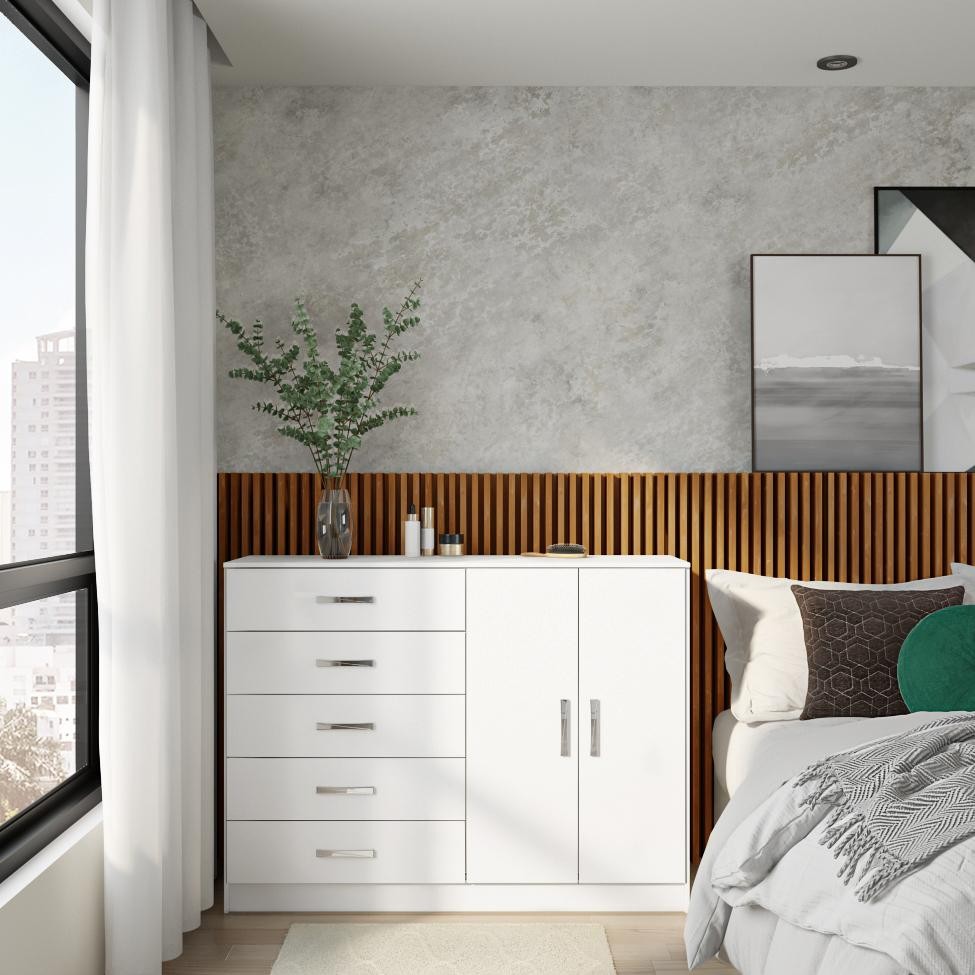 Que tal a Cômoda Beliz?Completo o seu quarto com a Cômoda Beliz e leve um móvel funcional para otimizar sua rotina diária. Seja para uso solo ou acompanhando o guarda-roupa, ela é ótima para receber seu vestuário e te ajudar na organização, afinal, são duas portas e cinco gavetas à disposição para você fazer a arrumação que melhor te atender. Ah, como ela tem uma cor neutra, vai ser fácil harmonizar com o restante dos móveis no ambiente ;) Cor: Branco Garantia em Meses: 3 Cores do Produto: Branco Instruções/Cuidados: Limpar com Pano Seco Conteúdo da Embalagem: 1 Cômoda - Entregue em: 1 Volume Modelo: Guatemala Número de Volumes: 1 Material: Estrutura em MDP 15 mm; Tampo em MDP 15 mm; Portas em MDP 15 mm; Frente e Lateral da Gaveta em MDP 15 mm; Dobradiças de Alumínio; Corrediças de Plástico; Puxador de Plástico; Acabamento em Laca Material para Filtro: MDP Descrição do Tamanho: Altura: 93 cm Largura: 123 cm Profundidade: 40 cm Peso Suportado: 100 Kg Altura do Produto (cm): 93 Largura do Produto (cm): 123 Comprimento do Produto (cm): 40 Peso do Produto (Kg): 41 Produto precisa de Montagem?: Sim, sugerimos a contratação do nosso serviço de montagem (para os CEPs em que o serviço está disponível) ou de algum profissional experiente de sua preferência Material da estrutura: MDP Necessita fixação na parede: Não Possui chaves: Não PROFUNDIDADE x LARGURA x ALTURA: 40 x 123 x 93 Fornecedor: Catálogo Digital Ambientes e Bundles LTDA. Baterias são necessárias?: Não Certificação de teste externa: Não Componentes incluídos: Não Is Fragile: Não Número da peça: Não Produto: Cômoda Cômodo Indicado: Quarto Inclui manual de montagem: Sim