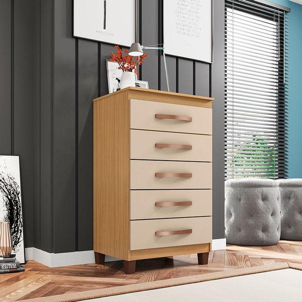 Cômoda Cannes 5 Gavetas Carvalho Americano Off White - Incorplac