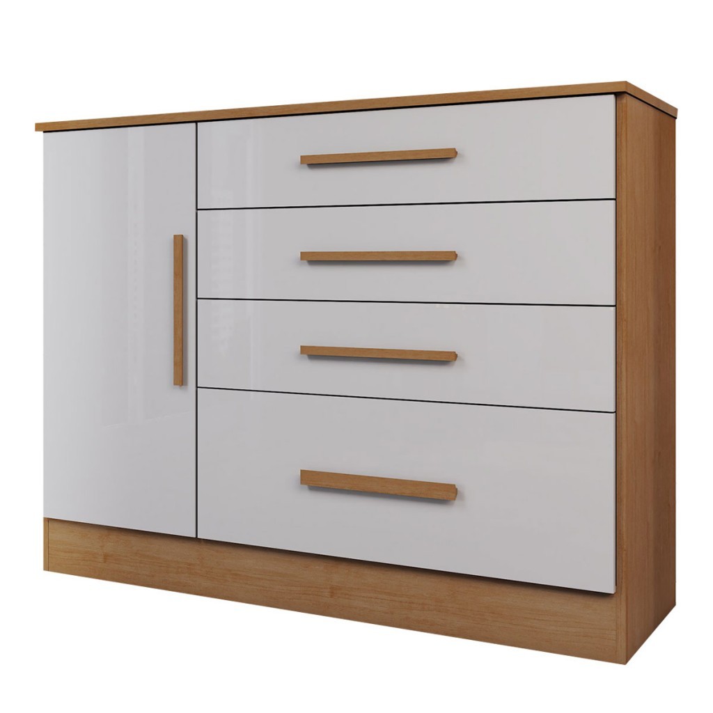 Dimensões: - Altura: 91,50 cm - Largura: 104,40 cm - Profundidade: 44,80 cm - Peso: 34,800 kg Descrição: O(a) Cômoda Summit 1 Porta 4 Gavetas Neve - Loja é produzido em MDP na escala de brilho Fosco e Semi-Brilho, e possui um grau de dificuldade de montagem: Médio. Seu revestimento/acabamento é: Pintura UV. Infelizmente a Loja não oferece serviço de montagem, deixamos essa informação bem clara em todas as nossas páginas de produto. Onde especificamos que os móveis chegarão desmontados, e que a montagem fica por conta do cliente. Como não oferecemos esse serviço não embutimos o mesmo no preço dos produtos, ou seja, maior economia para você! Todos os nossos móveis também acompanham o manual de montagem, e caso você queira, pode realizar a montagem você mesmo, sempre especificamos os graus de montagem dos produtos. Nos casos de grau baixo e médio, com pouco ou nenhum conhecimento, você mesmo pode efetuar a montagem, e fazer essa economia. Apenas nos graus de montagem alto, recomendamos a contratação de um montador com experiência, visto que são montagens mais complicadas. A montagem é feita com Parafusos, cavilhas e Minifix.. Este móvel é indicado para que seja utilizado no(a) Quarto, dando um toque especial no cômodo de sua casa. Para que você mantenha seu produto sempre em ótimo estado, recomendamos que use apenas um pano seco ou levemente umedecido, sem o uso de quaisquer produtos abrasivos. A Loja garante aos clientes, 90 dias de garantia nos produtos, porém, recomendamos que entre em contato com o fornecedor/marca do produto, pois o mesmo(a), pode garantir um prazo maior de garantia. Lembrando ainda que: quaisquer objetos decorativos que aparecem nas imagens, não acompanham o produto. Características: - Espessura da Estrutura: 12mm e 15mm - Possui Gavetas?: Sim - Quantidade de Gavetas: 4 - Peso Suportado nas Gavetas (Kg): 3 Kg - Material das Corrediças: Metálica - Tipo da Corrediça: Telescópica - Possui Portas?: Sim - Quantidade de Portas: 1 - Material da Porta: MDP - Espessura da Porta: 15 mm - Tipo de Porta: Portas de Bater - Material das Dobradiças: Metálica - Possui Vidro?: Não - Possui Espelho?: Não - Possui Prateleiras?: Sim - Quantidade de Prateleiras: 1 - Peso Suportado nas Prateleiras:: 5 Kg - Possui Puxadores?: Sim - Material do Puxador: Plástico - Possui Ripamento?: Não - Linha ou Coleção: Summit - Montagem Invertida?: Não Pode ser Montado Invertido - É frágil?: Sim - Possui Nicho?: Não - Material da Estrutura: MDP - Escala de Brilho: Fosco e Semi-Brilho - Possui Rodízios?: Não - Possui Sapatas?: Não - Possui Pés?: Não - Tipo de móvel: Cômoda - Acompanha: Cômoda + Kit Ferragem + Manual de Montagem - Acompanha Manual de Montagem: Sim - Como os Móveis Chegarão na Minha Casa: Desmontado em caixas, acompanhado de todas as peças, ferragens e manuais para montagem. - Grau de Dificuldade da Montagem: Médio - Necessita de Montagem: Sim - Sistema de Montagem: Parafusos, cavilhas e Minifix. - Garantia (dias): 90 - Indicação de Uso: Quarto - Observação: Objetos decorativos que aparecem nas imagens, não acompanham o produto. - Recomendação de Manutenção: Utilizar pano levemente umedecido, seguido de pano seco. Não utilizar quaisquer produtos abrasivos. - Revestimento /Acabamento: Pintura UV - Possui Chave?: Não