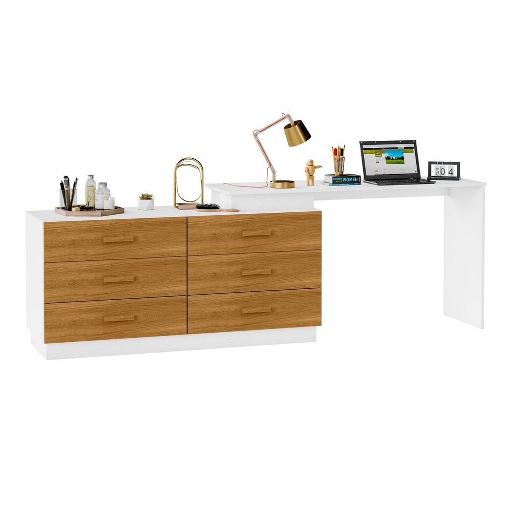 Cômoda com Escrivaninha em L com 6 Gavetas Leonie Yescasa Branco/Freijó