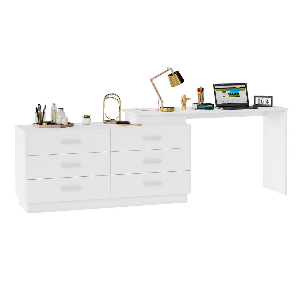 Cômoda com Escrivaninha em L com 6 Gavetas Leonie Yescasa Branco