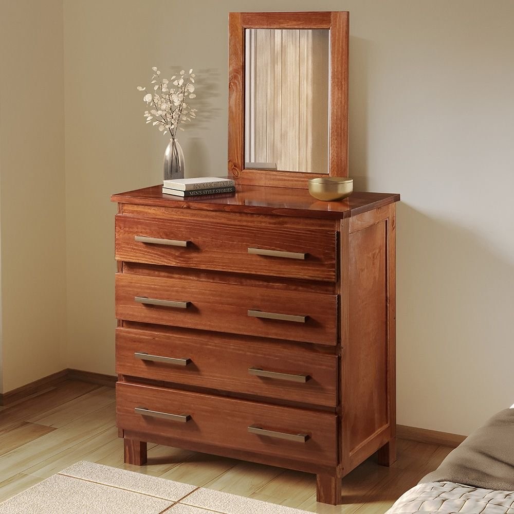 Cômoda com Espelho e Pés 4 Gavetas Lisboa Mogano