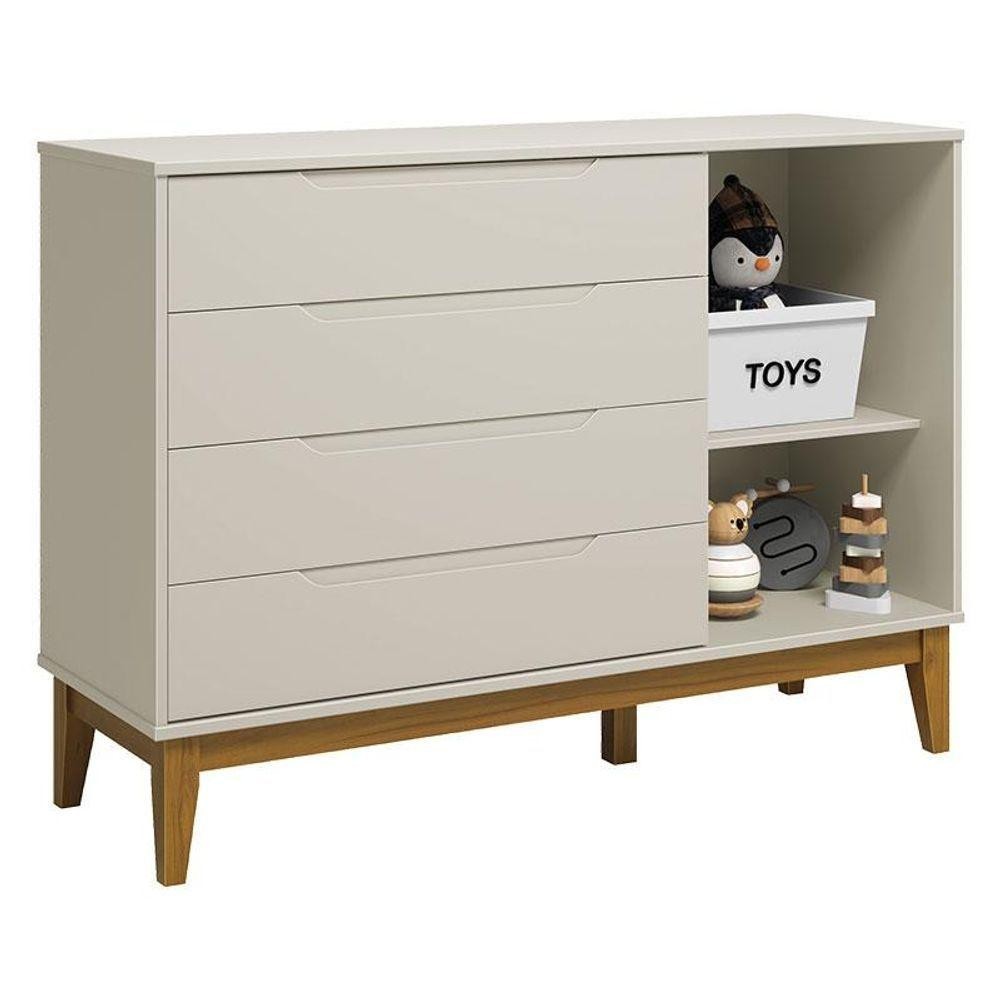 Cômoda Com Porta Classic Elfe Areia Acetinado Amadeirado - Reller A Cômoda moderna e de qualidade para o quartinho do bebê você encontra aqui! Desenvolvida pela Reller a Cômoda com Porta da linha Elfe, é a definição de encanto com a junção do moderno em conjunto com o estilo retrô para deixar o quartinho do bebê um sonho realizado. Confira as características técnicas e aproveite! Características Técnicas: - Desenvolvido MDF - 4 gavetas com corrediças telescópicas - 1 Porta - Puxadores embutidos - Pintura atóxica que não faz mal a saúde do bebê - Sistema anti tombamento - Pés Classic - Lindo design OBS: Decoração não inclusa. Dimensões: Altura: 97 cm Largura: 135 cm Profundidade: 45 cm Obs: Não realizamos a montagem do produto, porém acompanha manual de instruções.