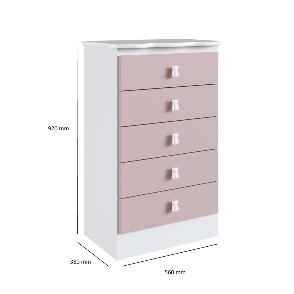 Cômoda de Bebê 5 Gavetas Branco/Rosa
