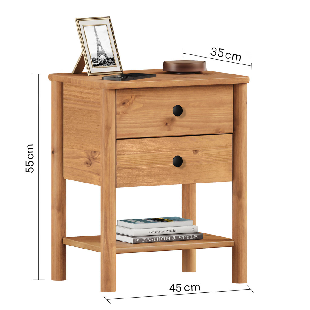Transforme o seu quarto com a Cômoda de Cabeceira Linha Apoana 02 Gavetas de Madeira Maciça Pinus, um móvel que une sofisticação, organização e durabilidade. Feita em madeira maciça de alta qualidade, esta Mesa de Cabeceira para Quarto de Madeira Maciça não é apenas funcional, mas uma peça que valoriza o ambiente, trazendo charme e elegância com um toque natural. Já teve problemas com cômodas que não atendem às suas necessidades? Gavetas que emperram, pouco espaço para organização ou móveis que perdem a qualidade com o tempo? A Mesa de Cabeceira Apoana 02 Gavetas Madeira Maciça Freijó com Corrediças Telescópicas foi desenvolvida para resolver todos esses desafios. Com suas duas gavetas espaçosas e corrediças telescópicas, ela oferece um deslizamento suave e silencioso, ideal para facilitar a sua rotina. Perfeita para guardar livros, acessórios e itens pessoais de forma organizada, ela mantém tudo sempre ao seu alcance. O espaço interno amplo e bem planejado permite que você armazene com total praticidade. O acabamento em tom Freijó destaca a textura única e elegante da madeira, trazendo um visual natural e sofisticado ao ambiente. Além do design minimalista e contemporâneo, a Mesa de Cabeceira Apoana possui fundo pintado, o que a torna perfeita para ser usada não apenas encostada na parede. Você pode colocá-la em diferentes posições no ambiente, garantindo mais liberdade na decoração sem comprometer o visual. Seja ao lado da cama ou como um ponto de destaque no quarto, a Mesa de Cabeceira Apoana transforma o ambiente em um espaço organizado e elegante. Feita para quem valoriza durabilidade e estilo, ela é a escolha perfeita para um quarto que reflete bom gosto e funcionalidade. Imagine nunca mais precisar trocar de móvel por falta de qualidade. A Mesa de Madeira Maciça para Quarto Apoana é resistente o suficiente para acompanhar você por muitos anos, preservando sua beleza e funcionalidade. Feita para quem valoriza organização e estilo, ela é a escolha perfeita para um quarto que reflete bom gosto e praticidade. Os pés torneados da Mesa de Cabeceira Apoana são um verdadeiro diferencial. Além de trazerem um toque clássico ao design moderno, eles adicionam estabilidade e um acabamento refinado, que valoriza ainda mais a composição do móvel. Esse detalhe confere personalidade à peça e eleva o padrão de sofisticação para o seu quarto. Descubra o que é ter um móvel que entrega tudo o que você precisa, sem abrir mão da sofisticação. A Cômoda de Cabeceira Apoana com acabamento em Freijó vai transformar a maneira como você organiza e decora seu quarto! Acabamento em Freijó: Traz um tom natural e acolhedor que harmoniza perfeitamente com móveis claros ou escuros, valorizando a decoração do ambiente. Dimensões do Produto Largura: 45 cm Altura: 54 cm Profundidade: 35 cm Peso: 8 Kg Materiais e Acabamento Material da Estrutura: Madeira Maciça - Finger Tipo da Madeira: Pinus Fundos da Gaveta: MDF Puxadores: Botão Preto Escala de Brilho: Fosco Material dos Pés: Pinus Maciço Recomendação de Limpeza: Utilize pano levemente úmido Características do Produto Possui Gavetas: Sim Quantidade de Gavetas: 2 Gavetas Estilo: Moderno Suporte: Sim, para livros Ambiente Principal: Quarto Adulto Precisa de Montagem: Sim Sistema de Montagem: Minifix / Cavilhas / Parafusos. Complexidade da Montagem: Médio Volumes: 01 Garantia do Fabricante: 12 meses Montagem: Recomendamos que seja feita por um profissional. Manual de Montagem: Sim Padrão de Cor: Nossa tinta à base de água é uma opção ecologicamente consciente e segura para a pintura, além disso, a tinta a base de água permite uma visualização dos veios da madeira, indicando robustez do produto. Madeira Maciça: Nossa madeira é proveniente de recursos naturais e é tratada de forma ecologicamente correta para o bem do meio ambiente. Sua resistência e vida útil é superior a móveis de chapa MDF utilizadas pelo mercado. Nossa madeira possui mais resistência ao desgaste natural do tempo, agregando mais durabilidade ao seu produto. Possuímos equipes de controle de qualidade para selecionar madeiras ideais para seu produto. Diferenciais: - Produto Versátil - Design Moderno - Madeira Maciça - Mais Resistente que MDF - Móvel Sustentável - Madeira Certificada - Pintura Livre de Solventes - MDF Livre de Formaldeído - Produto Qualidade Europeia Informações Importantes: - Montagem e Desmontagem não inclusa ao produto, de responsábilidade do cliente. - Não nos responsabilizamos, no ato da entrega, por subir escadas/elevadores ou transporte por guincho em apartamentos. Eventuais despesas são de responsabilidade do comprador. - Ao receber a mercadoria, o cliente deve verificar as condições da embalagem, caso haja alguma avaria não assine o comprovante de recebimento. - Objetos que ambientam as fotos não acompanham o produto. - Imagens meramente ilustrativas. Cores e tonalidades podem variar. - O conjunto não pode ficar exposto ao Sol ou Chuva.