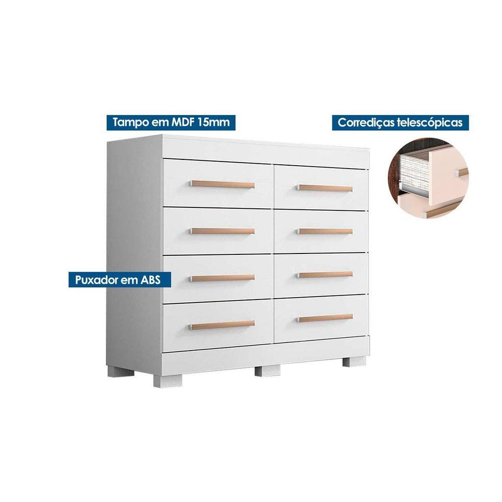 Cômoda de Quarto Nalu c/ 8 Gavetas Branco - ACP