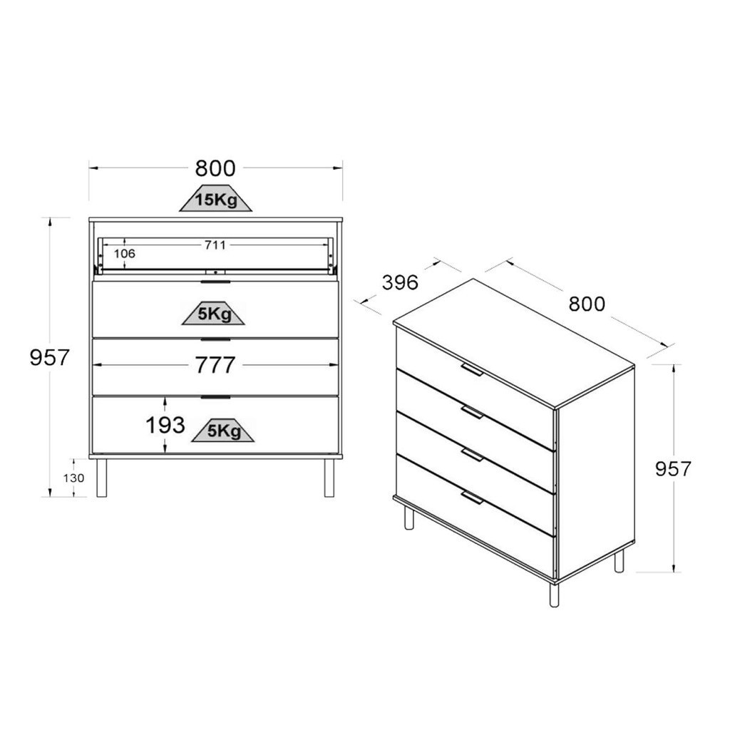 * APÓS O PEDIDO FINALIZADO, NÃO ACEITAMOS TROCA DE COR DO PRODUTO E NEM ALTERAÇÃO DE ENDEREÇO DE ENTREGA. FOTOS DOS PRODUTOS REAIS. A Cômoda 4 Gavetas Ditália é a escolha perfeita para aprimorar a beleza e organização do seu quarto. Com um design elegante, este móvel acrescenta um toque de sofisticação ao ambiente, enquanto suas quatro gavetas são cuidadosamente projetadas para acomodar objetos pequenos e médios, garantindo praticidade e ordem ao seu espaço. CARACTERÍSTICAS - Revestimento em impressão ultravioleta (UV) com acabamento semibrilho. - O tampo é produzido em MDP 15 mm e as laterais e molduras em MDF. - Tampo suporta até 20 kg. - Gaveta suporta até 5 kg cada. - Gavetas com corrediças metálicas. - Pés: Madeira maciça - Peso: 30,6 kg - Altura: 95,7 cm - Largura: 80 cm - Profundidade: 39,6 cm Acompanha kit ferragens e manual de montagem (montagem não inclusa). Este produto é vendido desmontado em 1 volumes, embalados em caixa de papelão com isopor nas laterais e revestidos com plásticos termoencolhível. A fixação é feita por girofix, cavilhas e parafusos, não é necessário parafusar na parede. 1 - O produto é entregue montado? Resposta: Nossos produtos são entregues desmontados. Os móveis são acompanhados de todos componentes necessários (manual de montagem, parafusos, pregos, puxadores e etc..) para que possam ser montados com facilidade. 2 - Vocês oferecem serviço de montagem? Resposta: Não disponibilizamos este serviço. 3 - Qual o valor da entrega? Resposta: O valor referente a entrega dependerá do destino final da mercadoria, para calcular o valor, é considerado o CEP do consumidor. 4 - Os produtos são novos? Resposta: Sim, trabalhamos apenas com produtos novos. 5 - Vocês atendem todos os estados do Brasil? Resposta: Sim, enviamos nossos produtos para todo o Brasil. LIMPEZA Limpar utilizando apenas pano umedecido com água, nunca utilizar abrasivos ou esponjas de aço. GARANTIA Garantia de 3 meses (contra defeitos de fabricação). OBSERVAÇÕES - Montar o móvel deitado de costas. - Forrar o chão com o papelão das embalagens, aconselhamos a ser feita por um profissional, não expor o móvel a fontes de calor ou de umidade. - As imagens indicam uma sugestão de uso e são apenas ilustrativas, os objetos decorativos não estão inclusos. - Nos responsabilizamos pela entrega dos produtos até a porta de entrada ou portaria do endereço informado. Caso a portaria do condomínio permita, as entregas são realizadas no piso térreo, sendo responsabilidade do cliente transportar a mercadoria até seu apartamento ou casa.