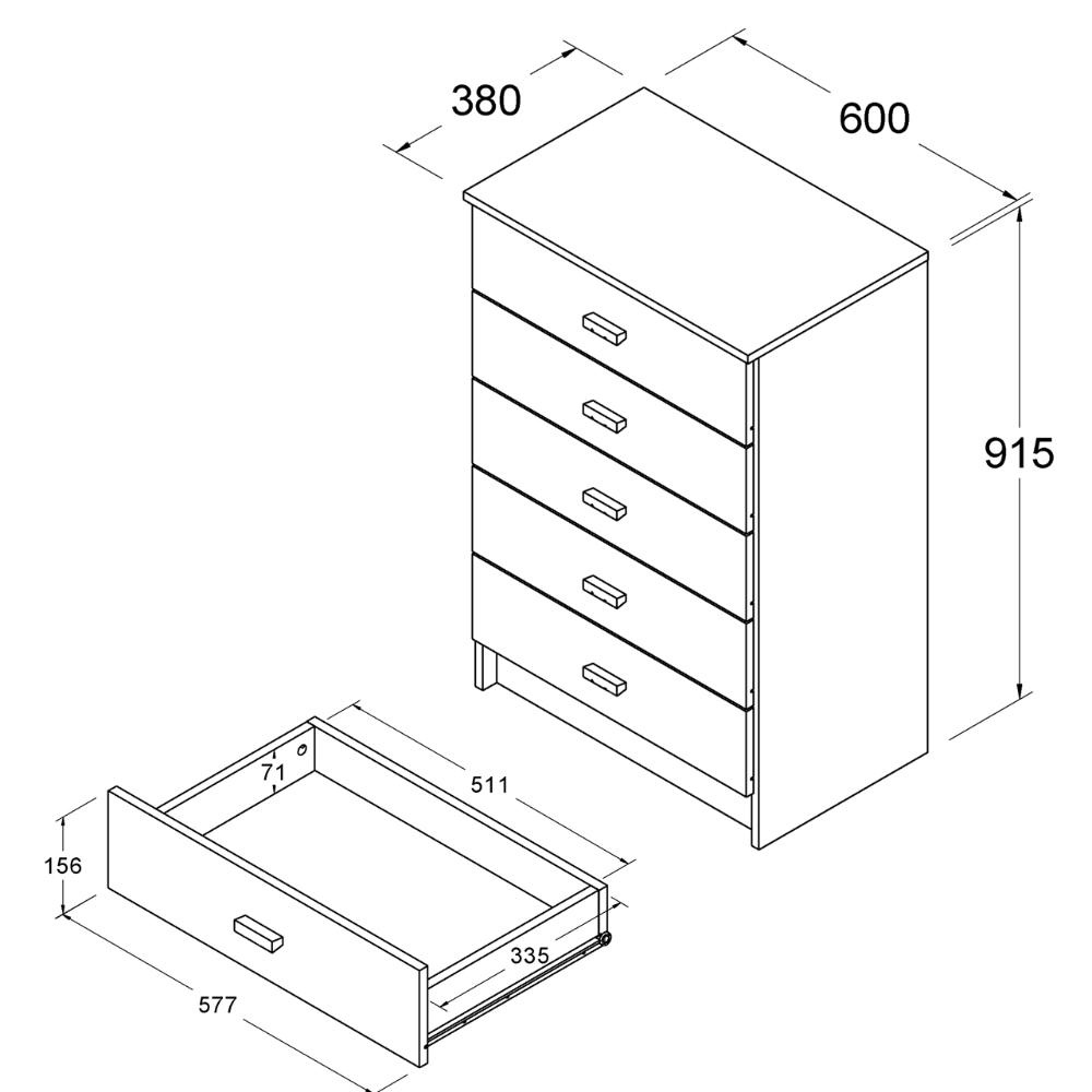 Cômoda Ditália 5 Gavetas BB-120 Branco
