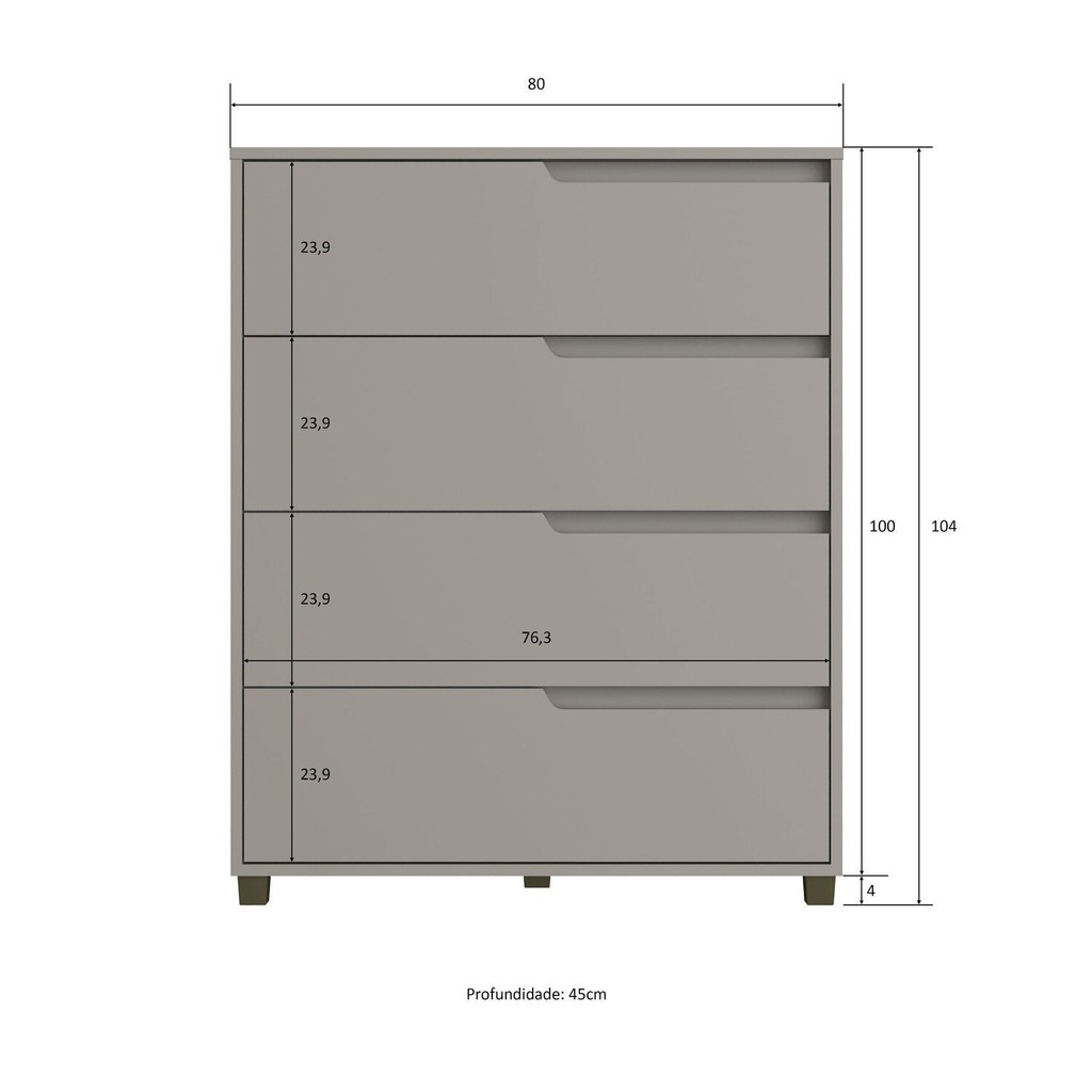 Cômoda em Mdf com 4 Gavetas 80cm X 104cm X 45cm Monet Cinza