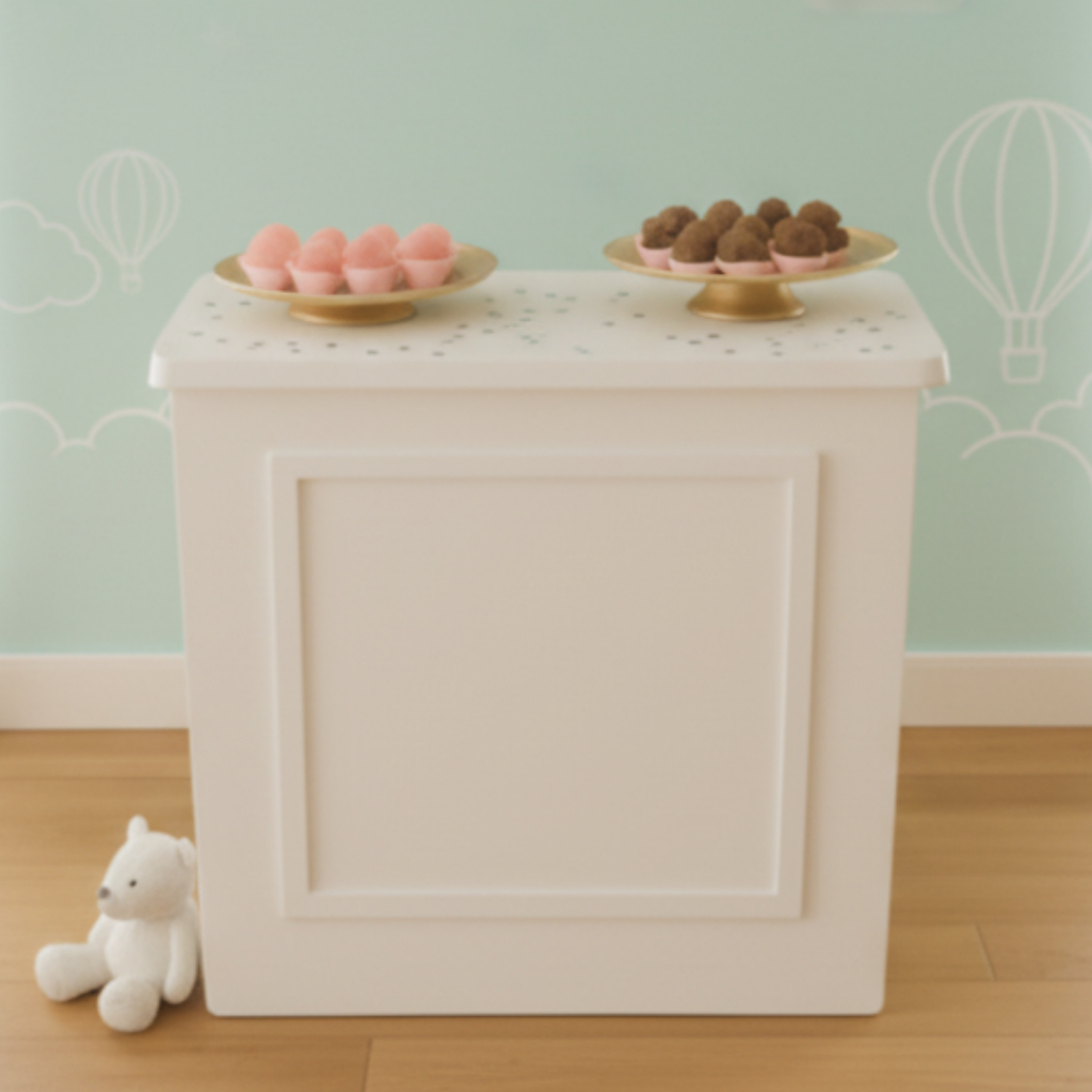 Cômoda Fake Branca Quadrada Boiserie para Bolo Doces e Enfeites