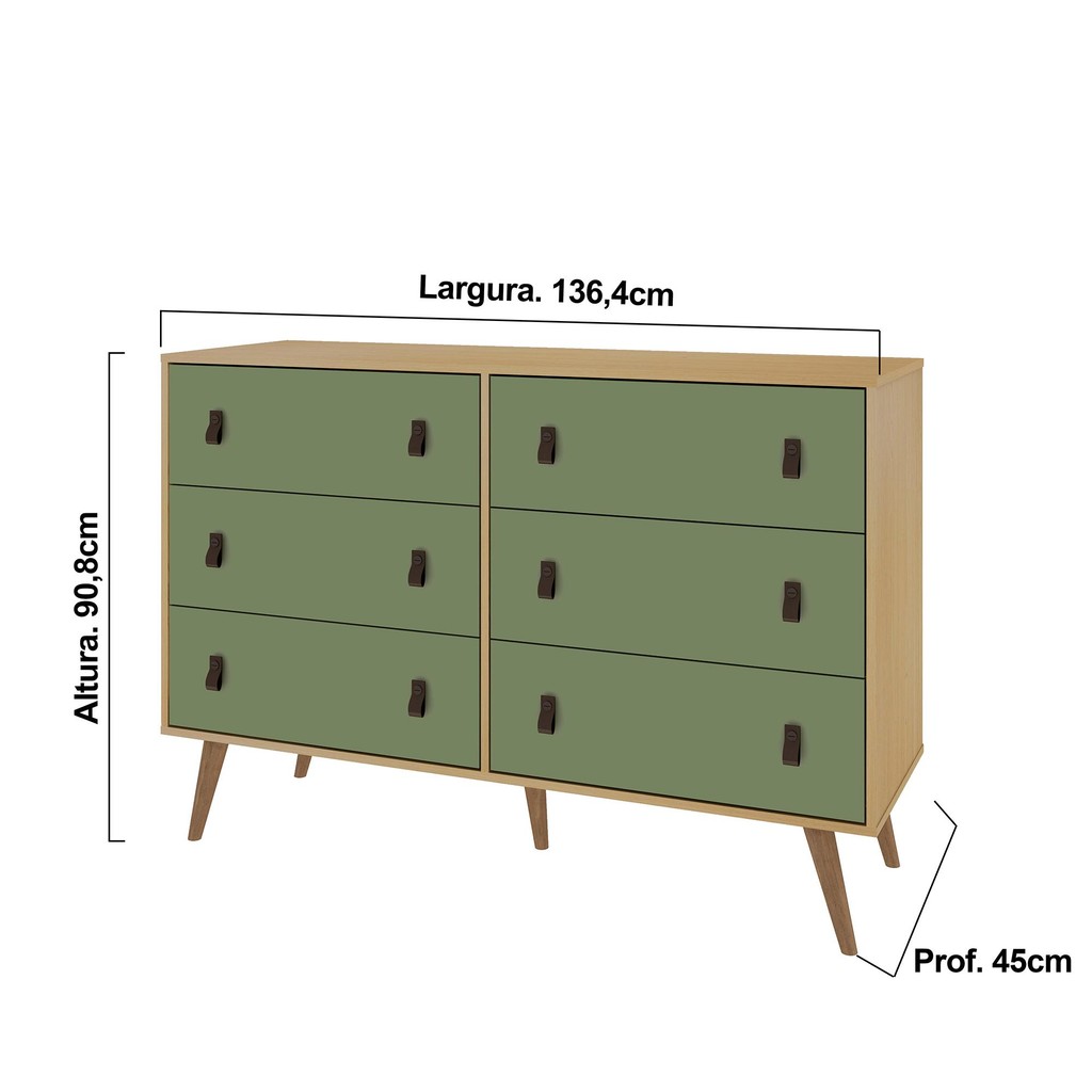 Cômoda Genialflex Amber 6 Gavetas Savana/Alecrim