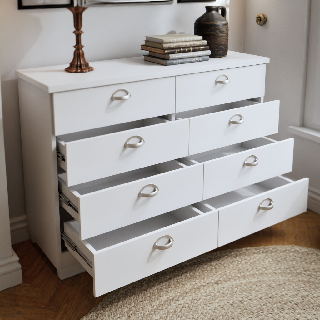 Cômoda Grécia 8 Gavetas MDP MDF Corrediça Telescópica Multiuso Quarto Organizador de Roupas