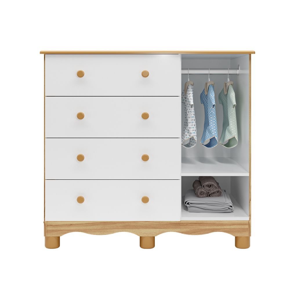 Cômoda Infantil 1 Porta com Janela e 4 Gavetas 100% MDF Lana Espresso Móveis Branco Brilho/Amêndoa