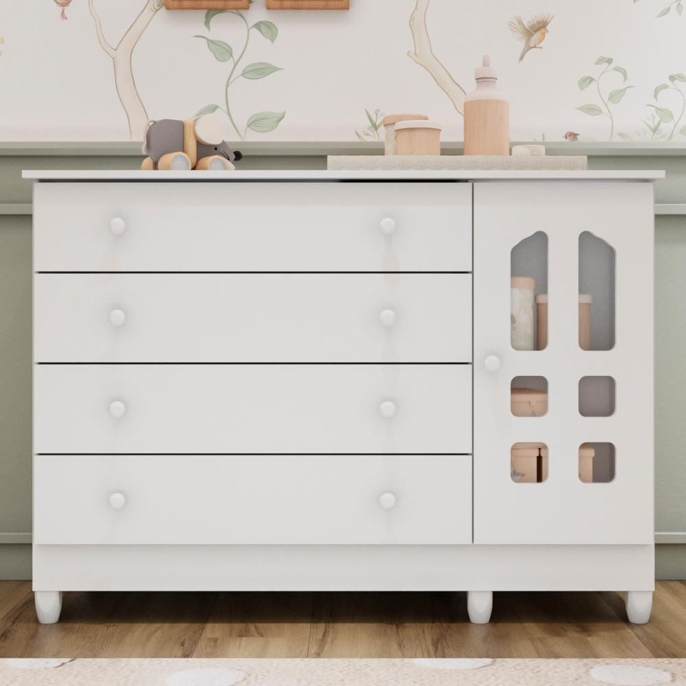 Cômoda Infantil 4 Gavetas com Porta Fraldário Gran Selena 100% MDF Branca