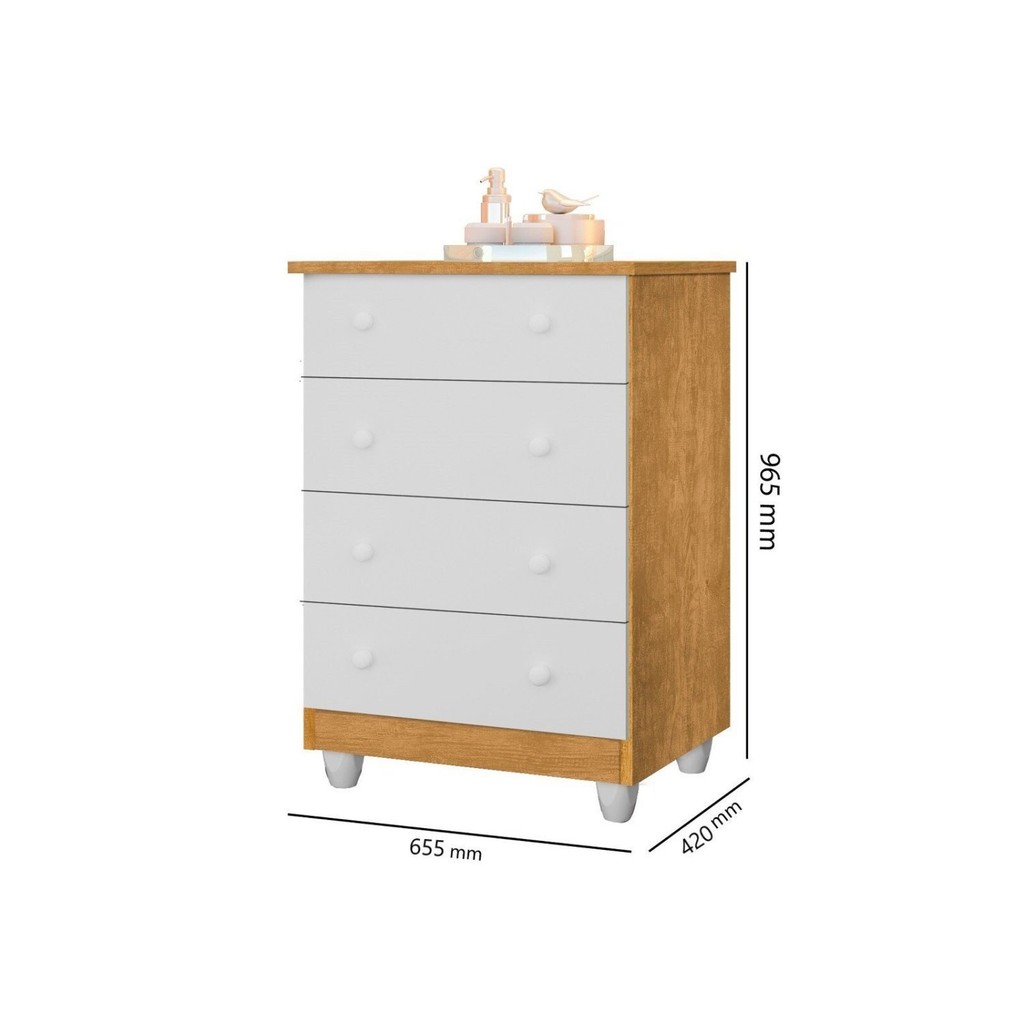 Cômoda Infantil 4 Gavetas Lara Nature/Branco