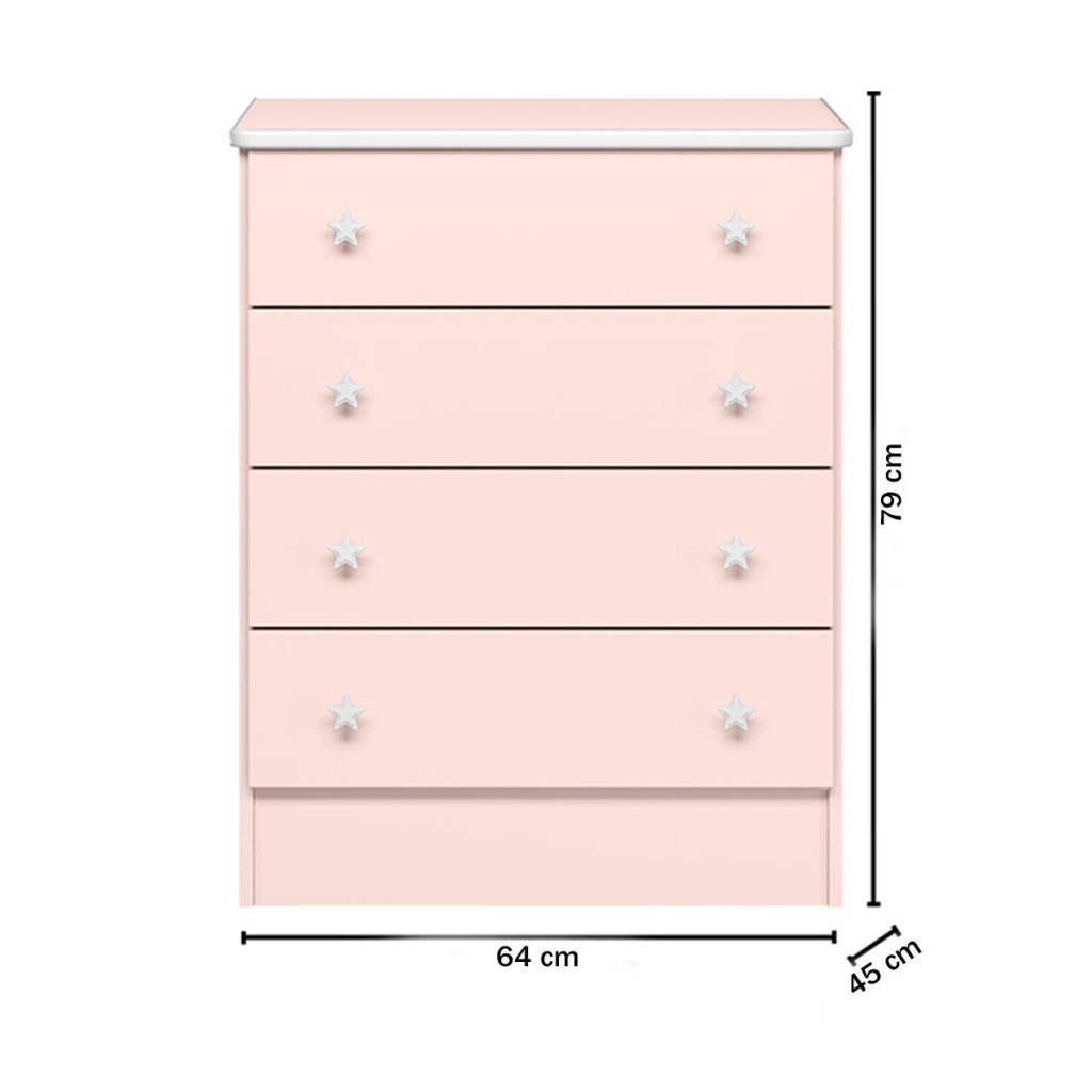 Cômoda Infantil Doce Sonho 4 Gavetas Rosa Acetinado - Qmovi