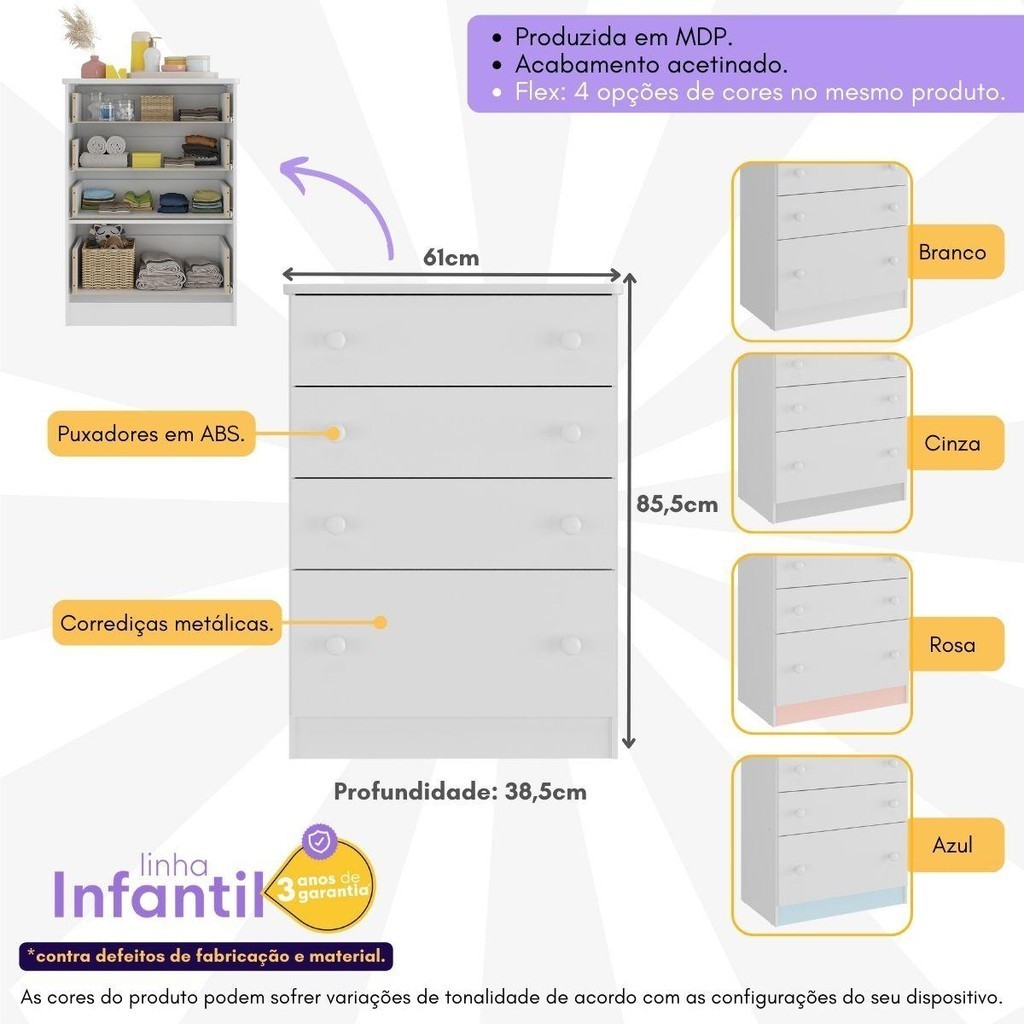 Cômoda Infantil Flex 4 Gavetas Jujuba Multimóveis BB2661