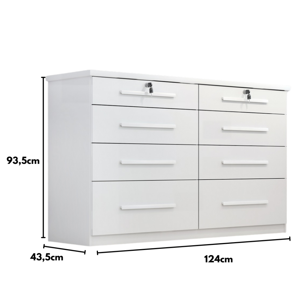 Comoda Infantil Monza 8 Gavetas Com Chave