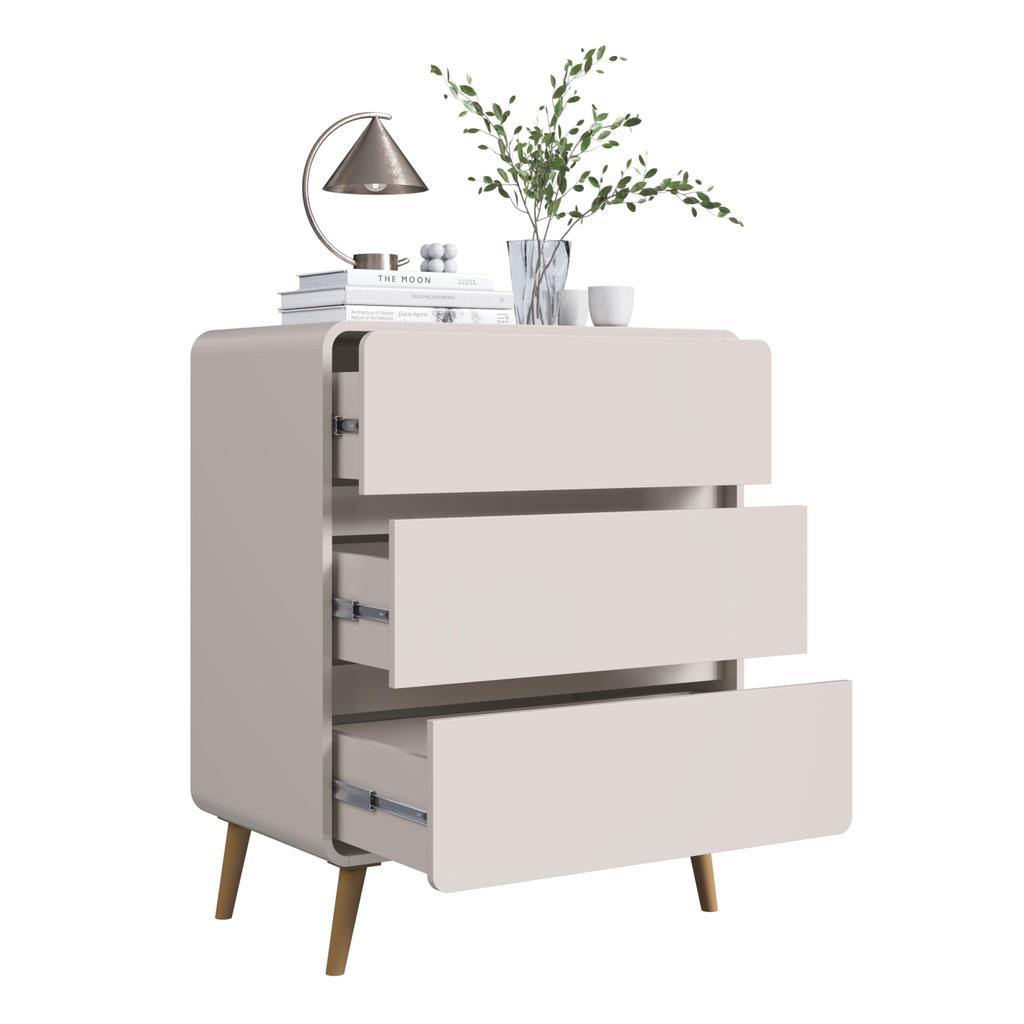 A Cômoda Infantil 3 Gavetas da Completa Móveis é uma solução funcional e sofisticada para a organização do quarto do bebê. Com design retrô e acabamento clean, o móvel combina estética e praticidade, sendo ideal tanto para armazenar roupas e acessórios quanto para ser utilizado como trocador ou fraldário. Seu amplo espaço interno, dividido em três gavetas, facilita o acesso aos itens do dia a dia e contribui para manter o ambiente sempre organizado. Os pés e o design com cantos arredondados reforçam o estilo retrô, ao mesmo tempo em que oferecem segurança e estabilidade. É a escolha perfeita para quem busca funcionalidade, elegância e aconchego no ambiente infantil. ESPECIFICAÇÕES DA CÔMODA MONTADA: Largura: 76,5cm Altura: 92,5cm Profundidade: 45cm Peso suportado: 22Kg Material: MDP ESPECIFICAÇÕES DA GAVETA: Quantidade de Gaveta: 3 Peso Suportado por Gaveta: 4Kg Tipo da Corrediça: Telescópica Puxador: não possui, a abertura é feita por meio de um sistema embutido, bastando puxar com a mão pelo vão frontal DIMENSÕES INTERNA DA GAVETA: Largura: 67,9cm Altura: 13cm Profundidade: 33,4cm CORES: Bege Dunas Carvalho Xingu PRODUTO ENTREGUE DESMONTADO MONTAGEM NÃO INCLUSA Produto composto por 1 volume Acompanha manual de montagem Peso total do produto: 31,90Kg Não possui gaveta com chave Possui 4 pés plástico DICAS DE MONTAGEM Forre o chão com o próprio papelão. Separe as peças e acessórios de acordo com o manual. Confira se todas as peças foram recebidas corretamente. Use um pano levemente umedecido com água, seguido de pano seco. Não utilize produtos químicos ou abrasivos.