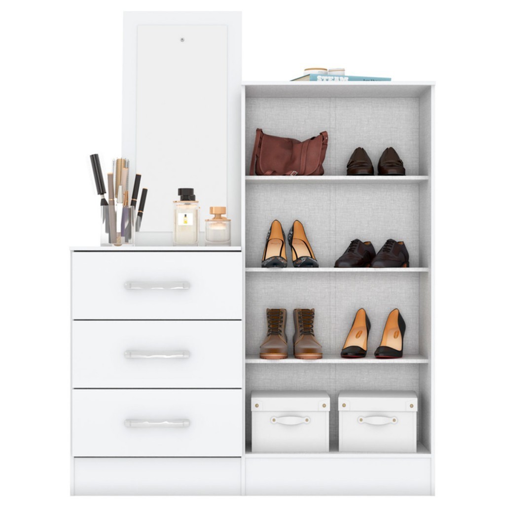 Descrição: O(a) Cômoda Liza 2 Portas 3 Gavetas com Espelho Branco - Briz é produzido em MDP na escala de brilho Brilho e Fosco, e possui um grau de dificuldade de montagem: Médio. Seu revestimento/acabamento é: Pintura UV. Infelizmente a Loja não oferece serviço de montagem, deixamos essa informação bem clara em todas as nossas páginas de produto. Onde especificamos que os móveis chegarão desmontados, e que a montagem fica por conta do cliente. Como não oferecemos esse serviço não embutimos o mesmo no preço dos produtos, ou seja, maior economia para você! Todos os nossos móveis também acompanham o manual de montagem, e caso você queira, pode realizar a montagem você mesmo, sempre especificamos os graus de montagem dos produtos. Nos casos de grau baixo e médio, com pouco ou nenhum conhecimento, você mesmo pode efetuar a montagem, e fazer essa economia. Apenas nos graus de montagem alto, recomendamos a contratação de um montador com experiência, visto que são montagens mais complicadas. A montagem é feita com Parafusos, cavilhas e Minifix.. Este móvel é indicado para que seja utilizado no(a) Quarto, dando um toque especial no cômodo de sua casa. Para que você mantenha seu produto sempre em ótimo estado, recomendamos que use apenas um pano seco ou levemente umedecido, sem o uso de quaisquer produtos abrasivos. A Loja garante aos clientes, 90 dias de garantia nos produtos, porém, recomendamos que entre em contato com o fornecedor/marca do produto, pois o mesmo(a), pode garantir um prazo maior de garantia. Lembrando ainda que: quaisquer objetos decorativos que aparecem nas imagens, não acompanham o produto. Características: - Peso Suportado nas Prateleiras (kg): 8 - Quantidade de Gavetas: 3 - Acompanha: 1 Cômoda, kit ferragens e 1 manual de montagem - Possui Sapatas?: Não - Necessita de Montagem: Sim - Possui Rodízios?: Não - Material da Estrutura: MDP - Como os Móveis Chegarão na Minha Casa: Desmontado em caixas, acompanhado de todas as peças, ferragens e manuais para montagem. - Grau de Dificuldade da Montagem: Médio - Sistema de Montagem: Parafusos, cavilhas e Minifix. - Material das Corrediças: Metálica - Material das Dobradiças: Metálica - Material do Puxador: ABS - Observação: Objetos decorativos que aparecem nas imagens, não acompanham o produto. - Recomendação de Manutenção: Utilizar pano levemente umedecido, seguido de pano seco. Não utilizar quaisquer produtos abrasivos. - Indicação de Uso: Quarto - Garantia (dias): 90 - Escala de Brilho: Brilho e Fosco - Revestimento /Acabamento: Pintura UV - Peso Suportado nas Gavetas (kg): 3 - Material do Tampo: MDP - Quantidade de Puxadores: 5 - Espessura do Espelho (mm): 3 - Medidas do Espelho ( A x L ): 700mm x 300mm x 3mm - Quantidade de Prateleiras: 3 - Quantidade de Prateleiras: 3 - Possui Espelho?: Sim - Material das Corrediças: Metálica - Material das Dobradiças: Metálica - Material do Puxador: Plástico - Peso Suportado nas Gavetas (Kg): 3 Kg - Peso Suportado nas Prateleiras:: 8 Kg - Possui Gavetas?: Sim - Possui Portas?: Sim - Possui Prateleiras?: Sim - Possui Puxadores?: Sim - Quantidade de Gavetas: 3 - Quantidade de Portas: 2 - Espessura do Tampo (mm): 15 - Tipo de Porta: Portas de Bater - Tipo da Corrediça: Convencional - Material da Porta: MDP - Espessura da Porta: 12 mm - Altura do Espelho: 70 Cm - Largura do Espelho: 30 Cm - Espessura do Espelho: 0,3 Cm - Possui Pés?: Não - É frágil?: Sim - Tipo de móvel: Cômoda Dimensões: - Altura: 22,00 cm - Largura: 73,80 cm - Profundidade: 55,06 cm - Peso: 38,000 kg