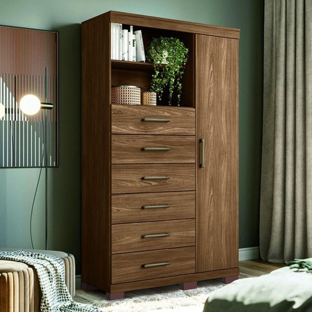 Cômoda Multiuso 1 Porta 6 Gavetas Com Pés Marabá Santos Andirá Jatoba