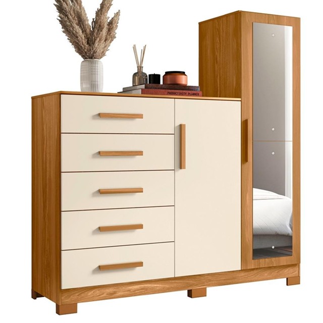 Comoda New Master Quarto Com 5 Gavetas 2 Portas e Espelho