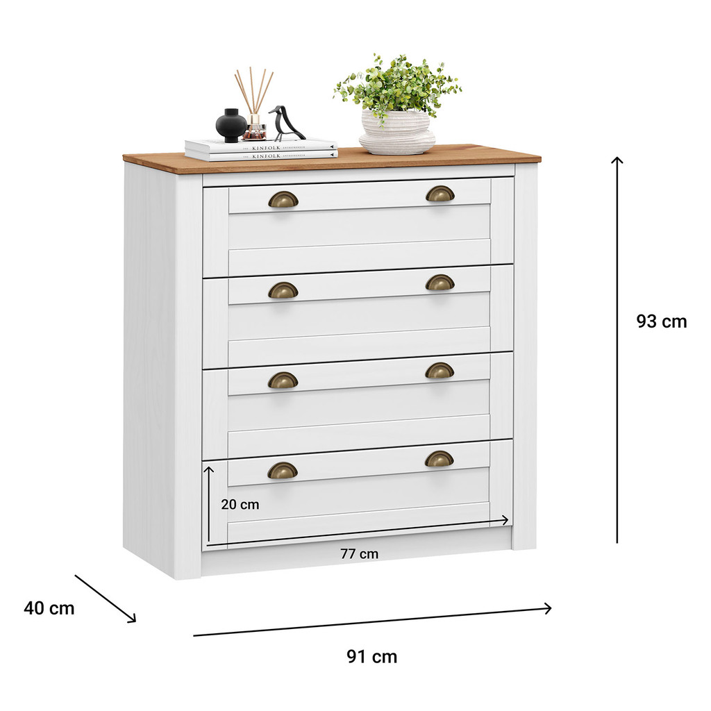 Cômoda Organizadora Madeira 4 Gavetas Bolton Branco Madeirado