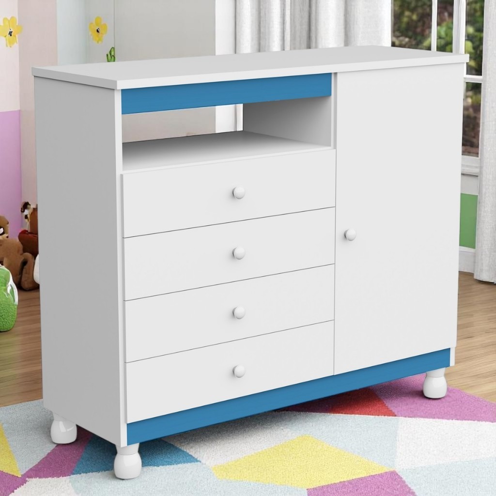 Cômoda Organizadora Roupas com trocador Gavetas Gaveteiro Quarto Bebe Baby Multiuso Pés Regulagem
