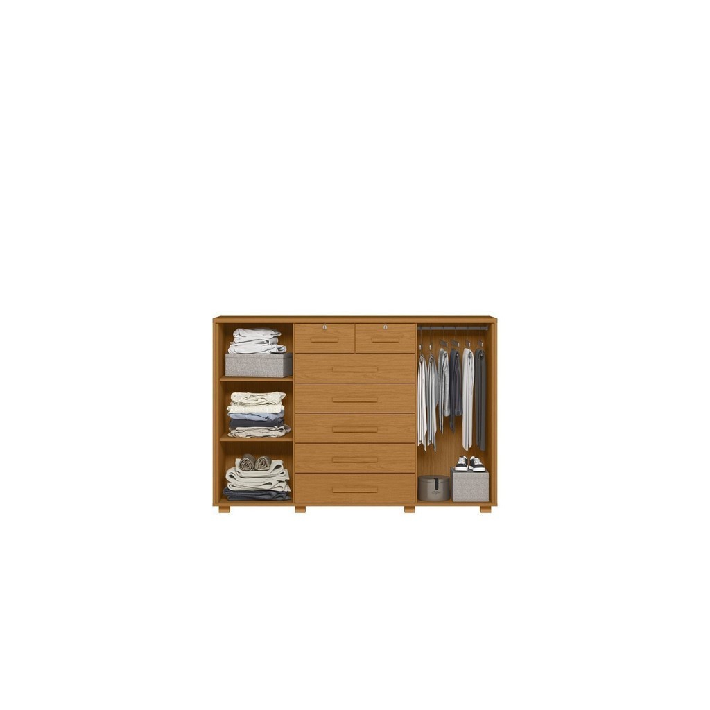 A Cômoda Fontana é moderna e robusta. Possui 7 gavetas com corrediças telescópicas, sendo as duas menores com chaves e 2 portas, uma com cabideiro e outra com prateleiras. Um produto bem distribuído e completo que irá compor seu quarto. Estilo: Moderno Peso (kg): 71.1 Garantia: 03 Meses Altura (cm): 110 Acabamento: Pintura UV Largura (cm): 160 Possui Pés: Sim Possui Nichos: Não Possui Portas: Sim Tipo de Porta: Bater Altura dos Pés: 5 Pés Reguláveis: Não Possui Gavetas: Sim Possui Rodízio: Não Suporta Até (kg): 71 Possui Espelhos: Não Profundidade (cm): 45 Escala de Brilho: Fosco Gaveta com Chave: Sim Material dos Pés: ABS Material da Porta: MDP Material do Fundo: HDF Origem do Produto: Nacional Acabamento dos Pés: Pintura Ambiente Principal: Quarto Material da Gaveta: MDP Material Principal: MDP Possui Prateleiras: Sim Acabamento da Porta: Pintura UV Sapatas Niveladoras: Não Acabamento da Gaveta: Pintura UV Material da Prateleira: MDP Peso Máximo por Gaveta: 5 Acabamento da Prateleira: Pintura UV Tipo de Puxador da Porta: Externo Escala de Brilho da Porta: Fosco Tipo de Puxador da Gaveta: Externo Escala de Brilho da Gaveta: Fosco Peso Máximo por Prateleira: 5 Tipo de Corrediça da Gaveta: Metálica Telescópica Material do Puxador da Porta: MDP Material do Puxador da Gaveta: MDF Escala de Brilho da Prateleira: Fosco Informações Complementares (Novo): As duas gavetas menores com chaves e suportam até 3 Kg. Tipo de Dobradiça/Corrediça da Porta: Metálica Marca: Albatroz Móveis Cor Interna: Cinamomo Cor: Cinamomo Cor do Produto: Cinamomo Itens Inclusos: 1 Cômoda, Kit Ferragens e Manual de Montagem Cor Predominante: Marrom Linha ou Coleção: Albatroz Cor do Puxador: Marrom Quantidade de Prateleiras: 02 Prateleiras Quantidade de Gavetas: 07 Gavetas