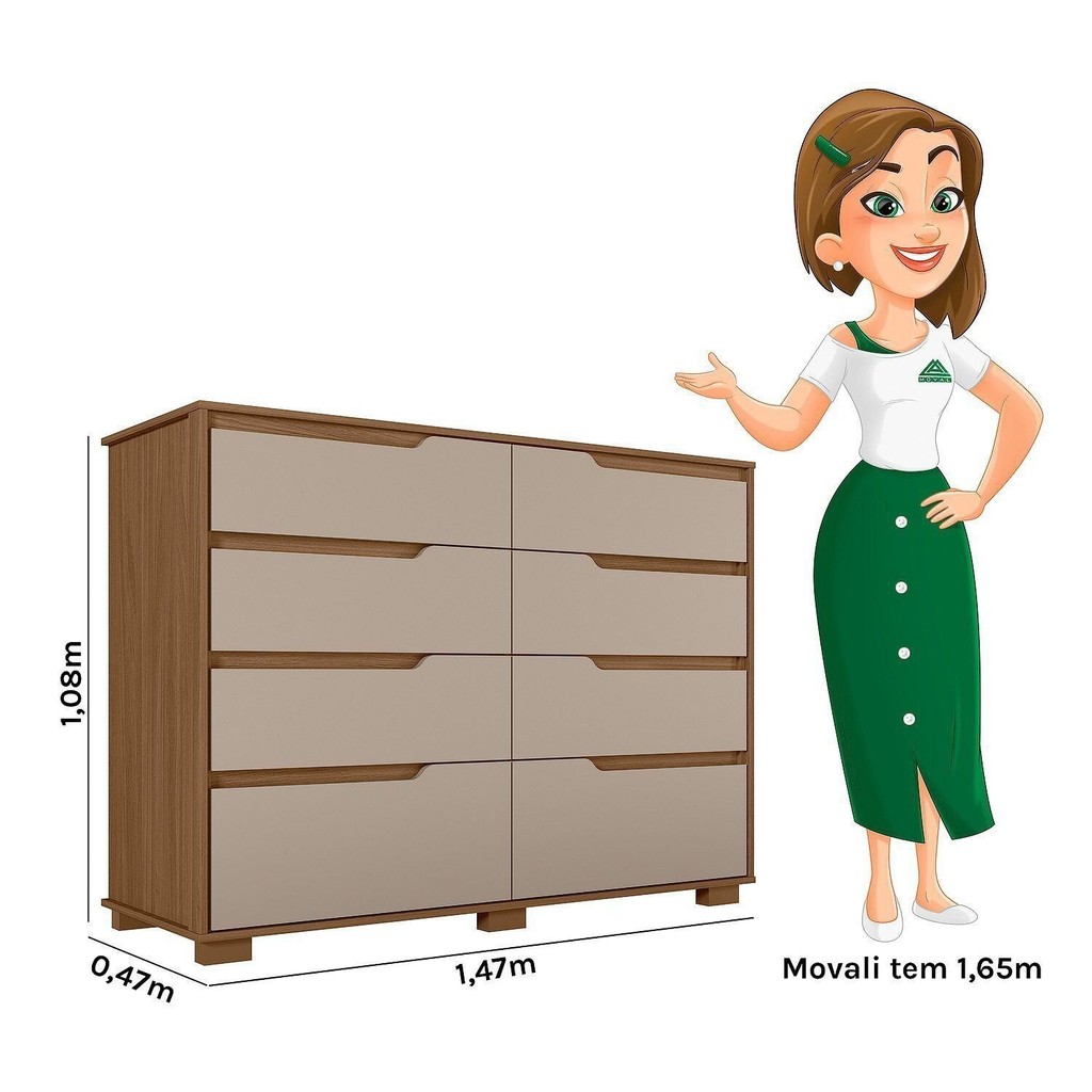 Cômoda para Quarto 8 Gavetas 147cm Georgia Carvalho/Fendi